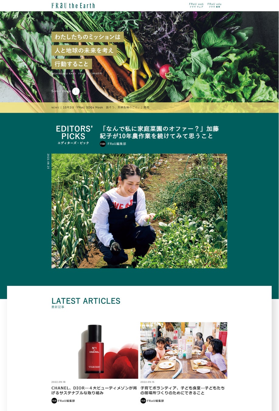 『FRaU web』が、よりテーマにフォーカスした2つのサイト内サイトでパワーアップ!10月3日より、『FRaU the Earth』『FRaU edu』が開始!