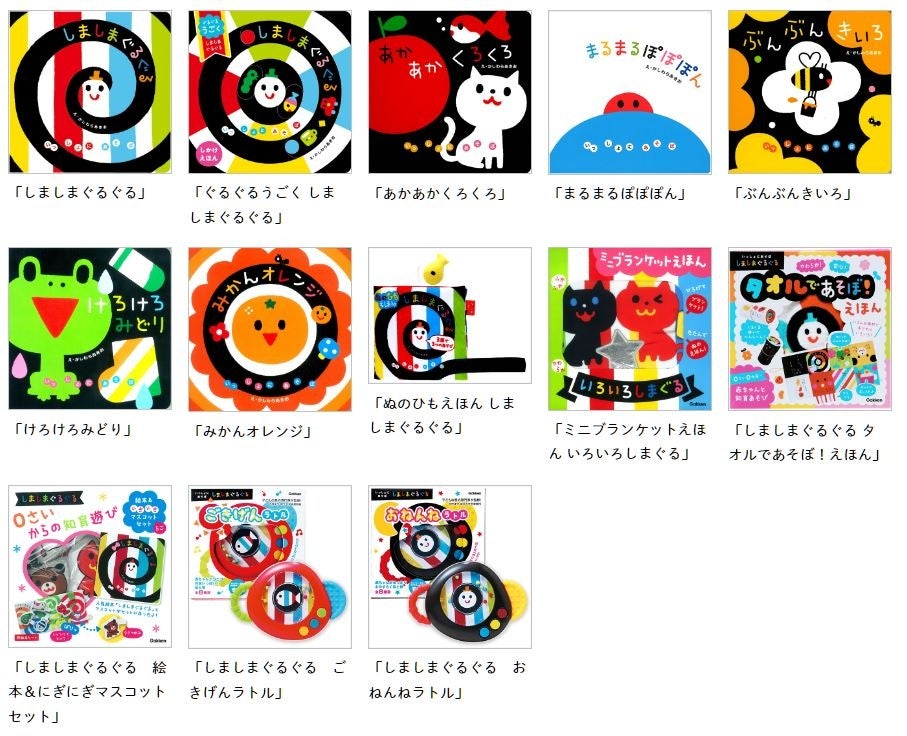 さらに、ベビー服や雑貨、食器など、さまざまな「しまぐるアイテム」も多数リリース。絵本以外でも注目が集まっています。