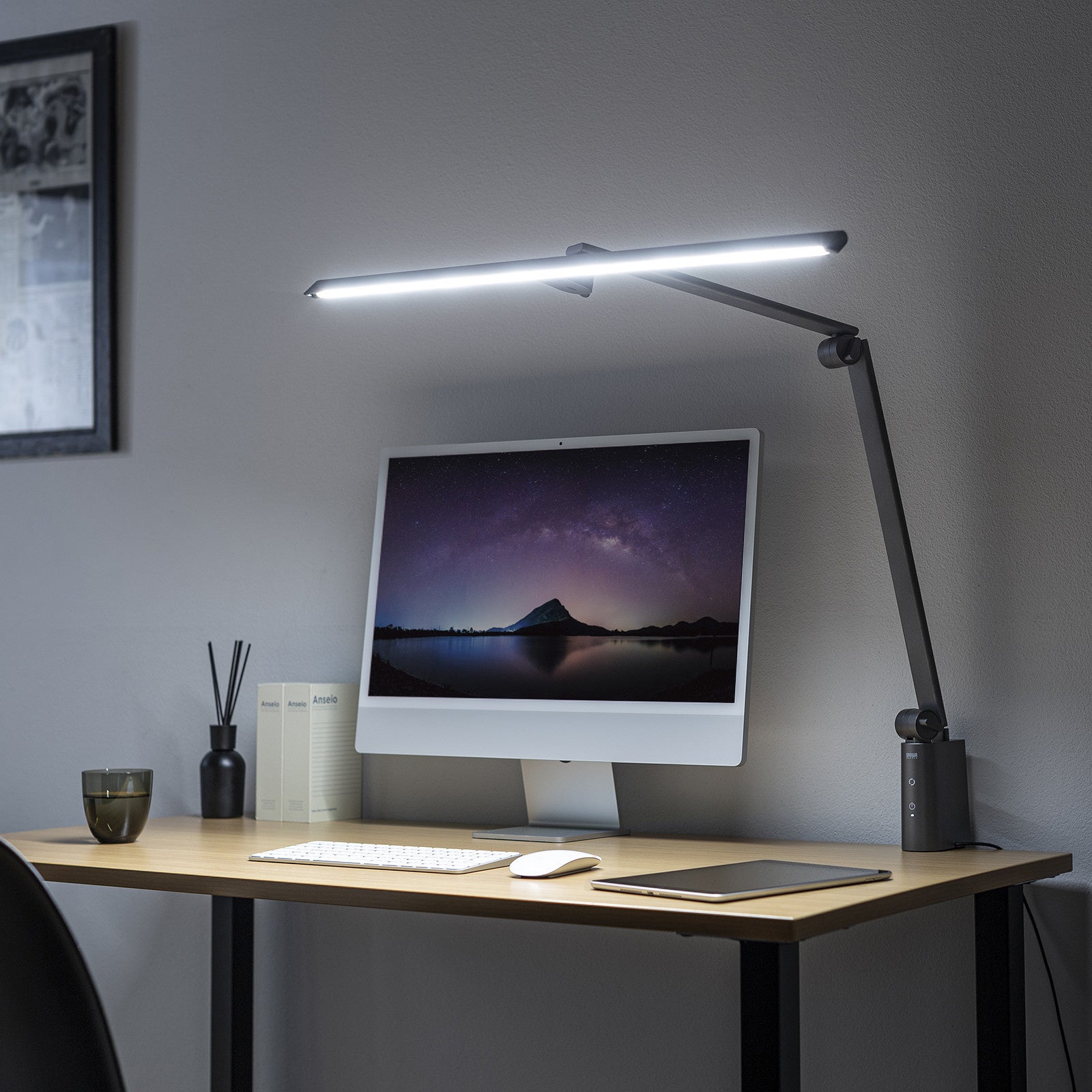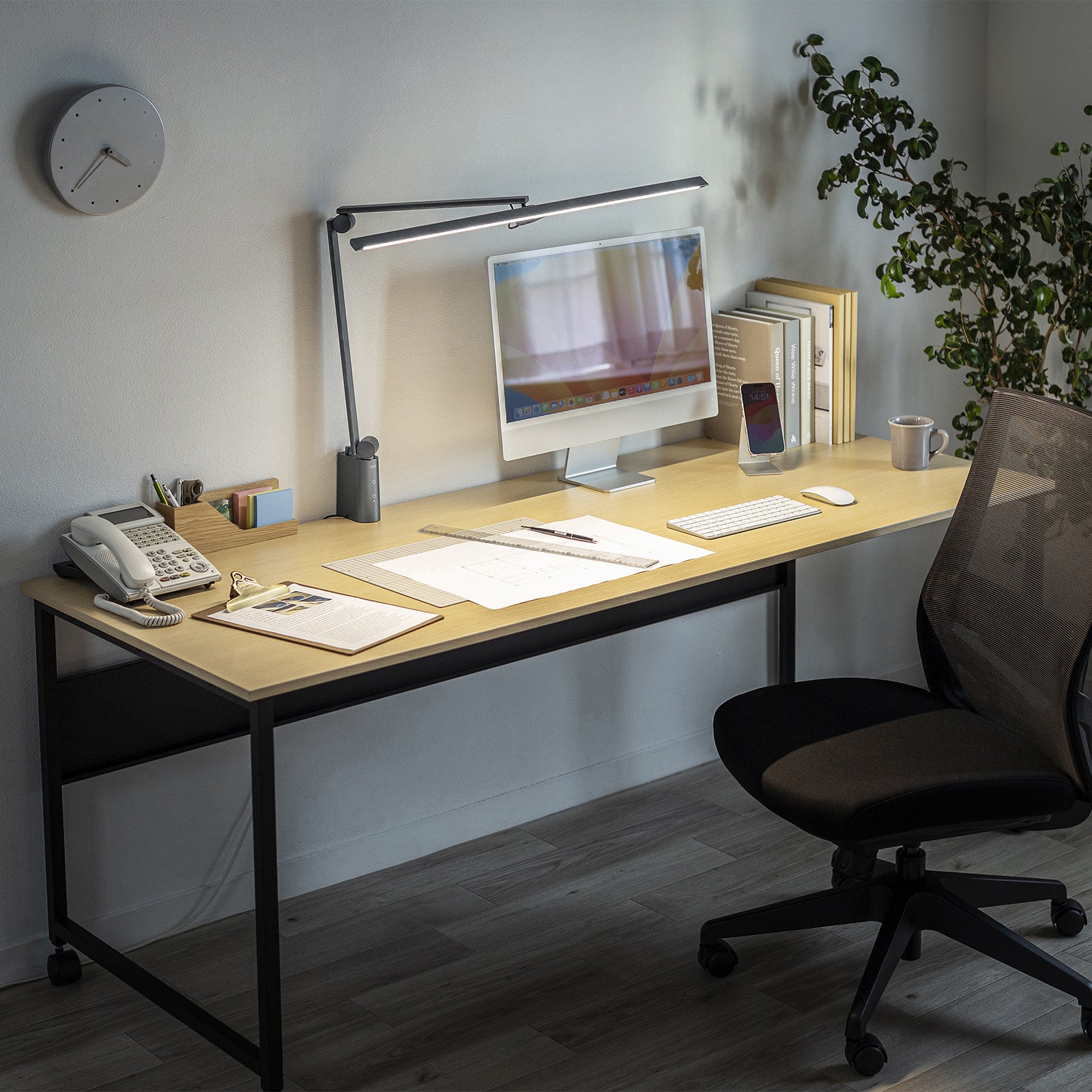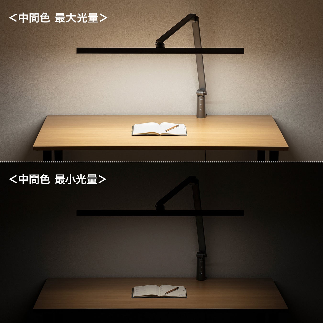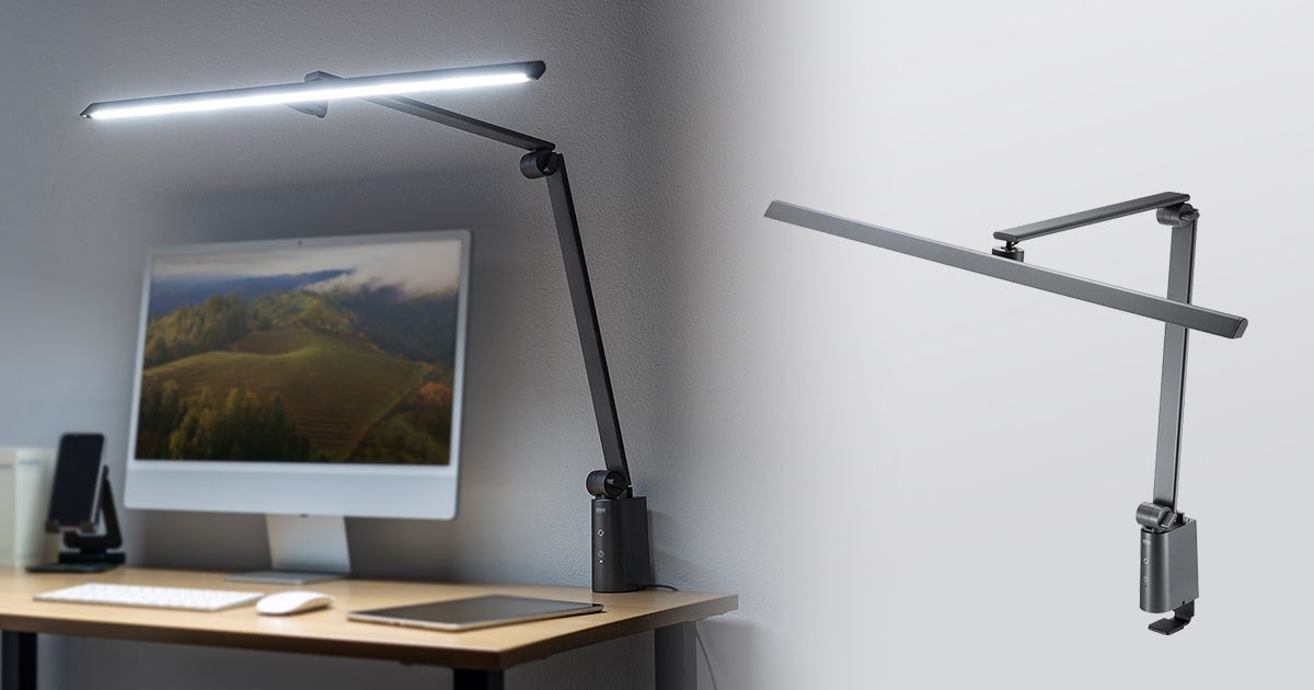 ディスプレイ、キーボード、書類などの作業スペース全体にある物を均一に明るく照らすことができます。