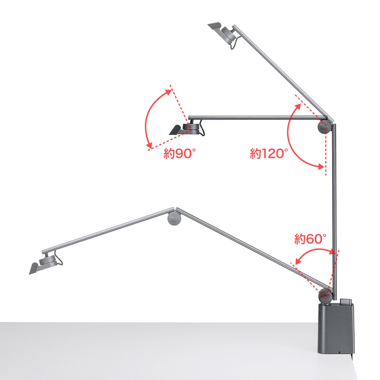 アームは3関節で、手元や必要な場所にLEDライトを動かして、明るさの範囲を変えることができます。