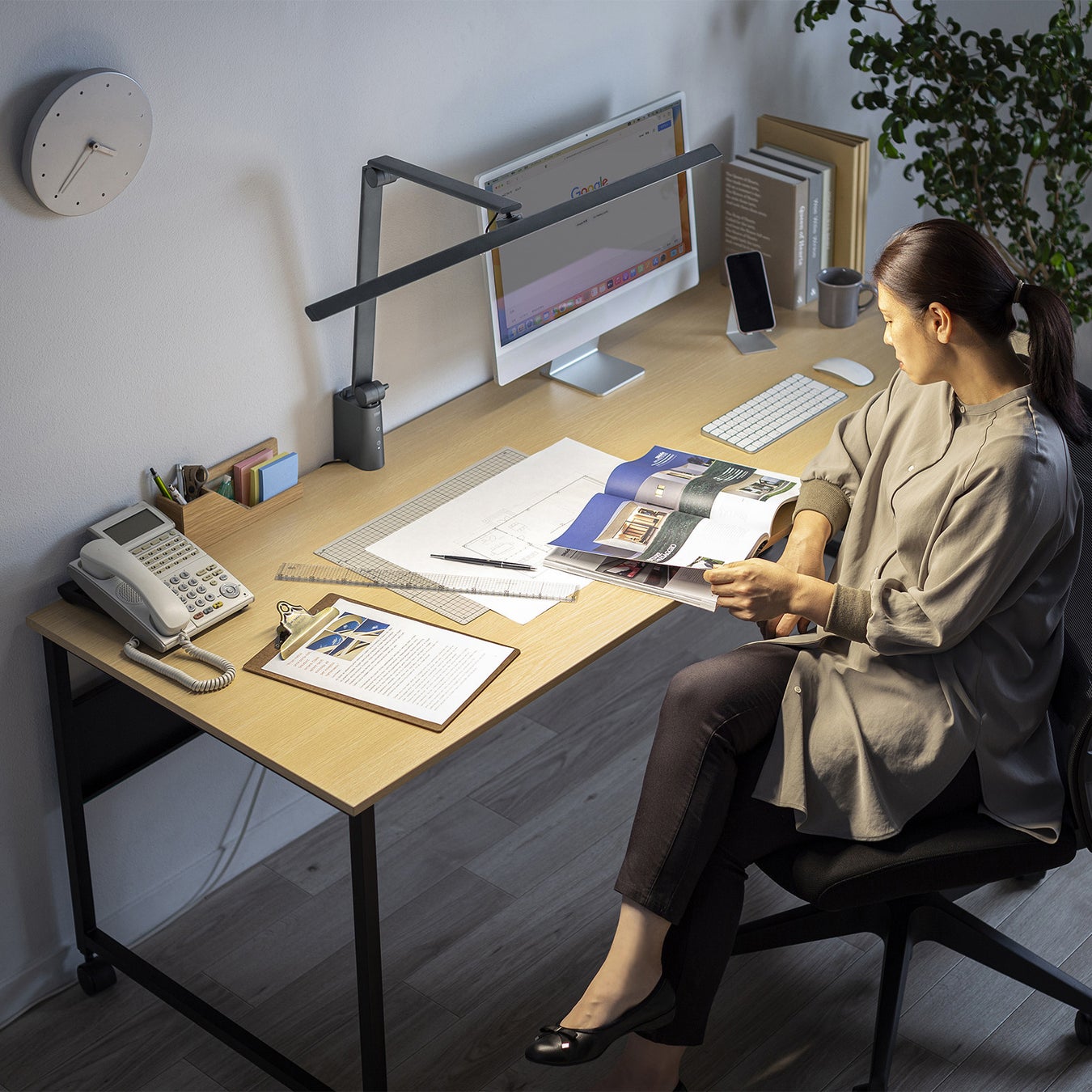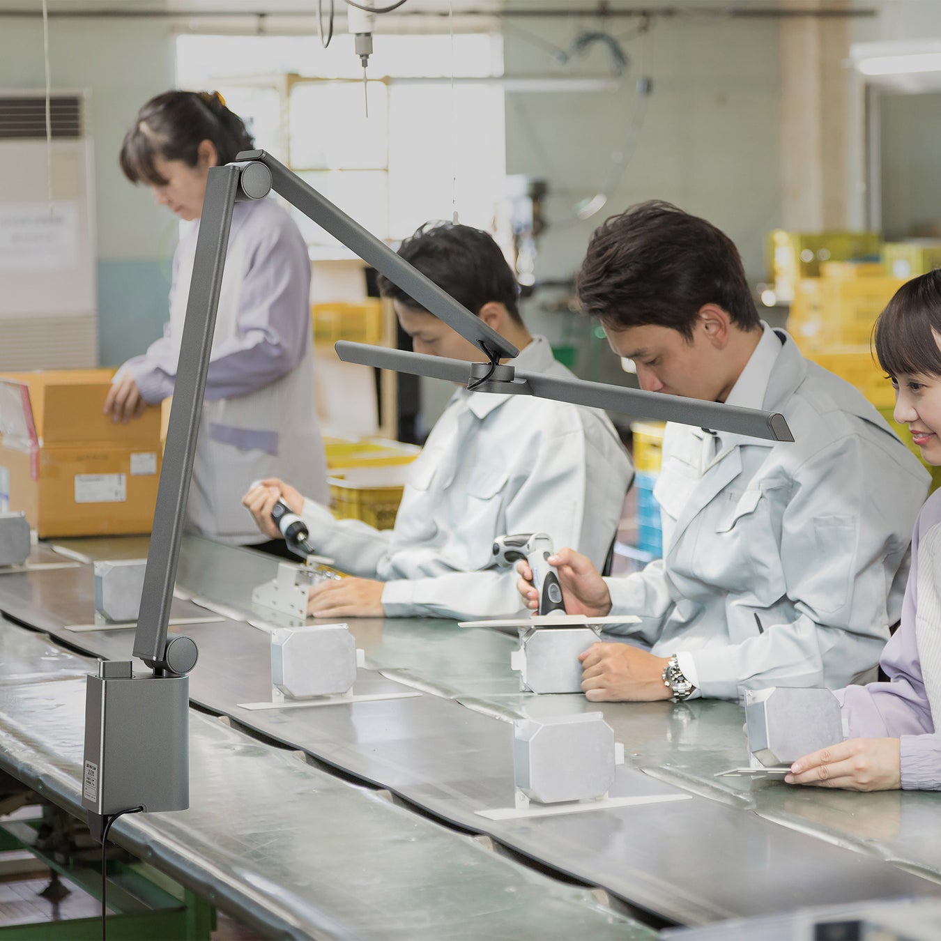 自宅や会社でのデスクワークにはもちろん、工場の検品などの細かい作業では明るく均一な照明が必要なので、このライトが最適です。様々な場面で明るく見やすい環境を整えることができます。