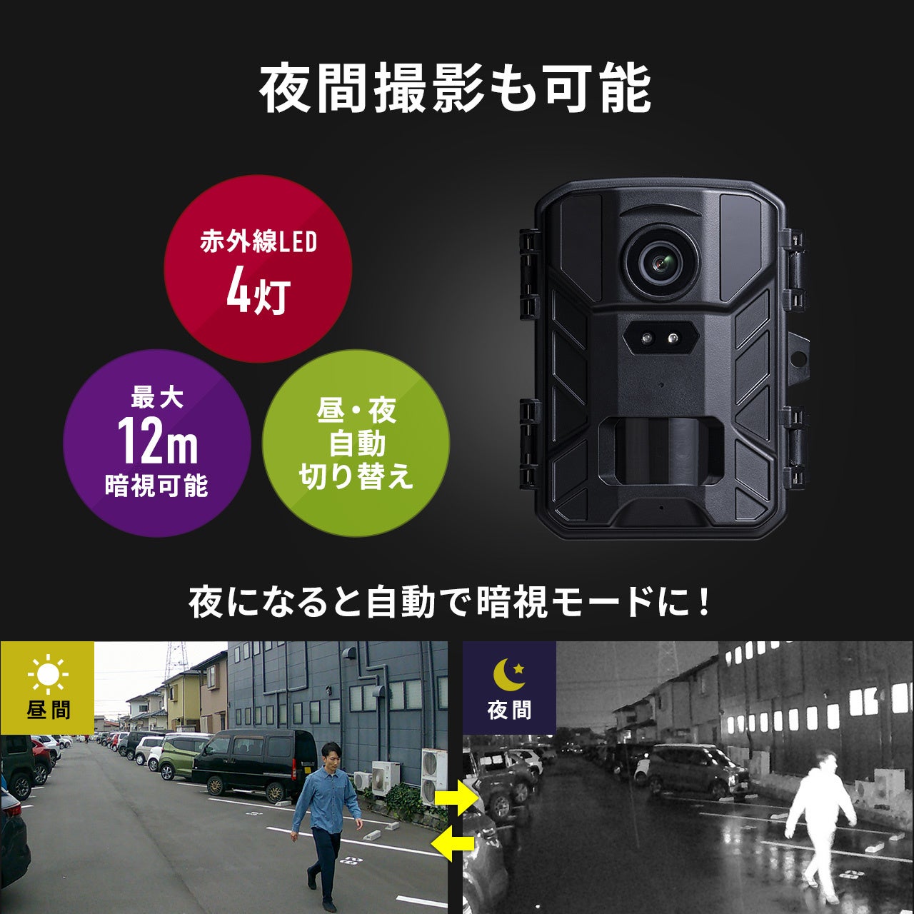 本製品は、防犯や野生動物観察に適したセンサー内蔵カメラです。