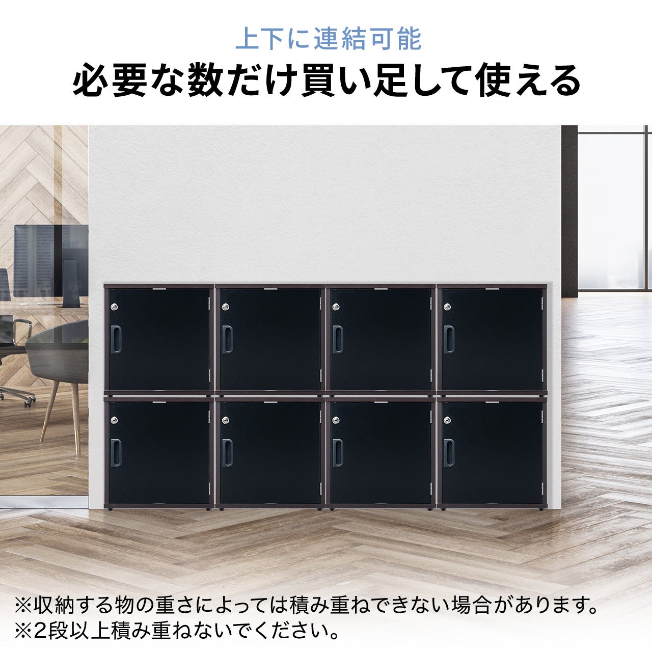 連結パーツを使用して、ボックスを縦連結、横連結、縦横連結が可能で、収納箇所を増やすことができます。(上下は2段まで)