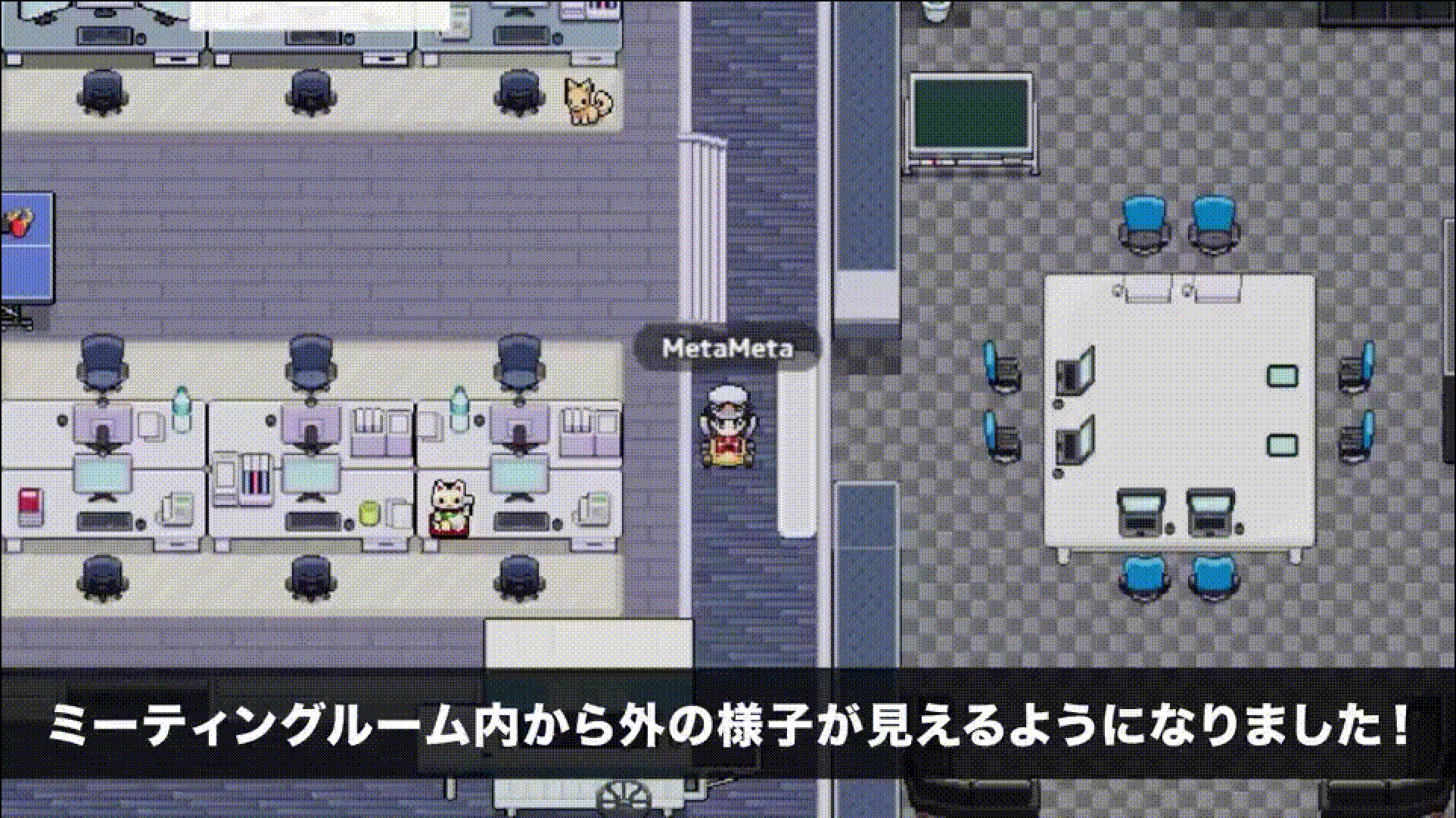 しかし今回のアップデートで、ミーティングルーム内からもスペース全体を見ることができるようになりました。