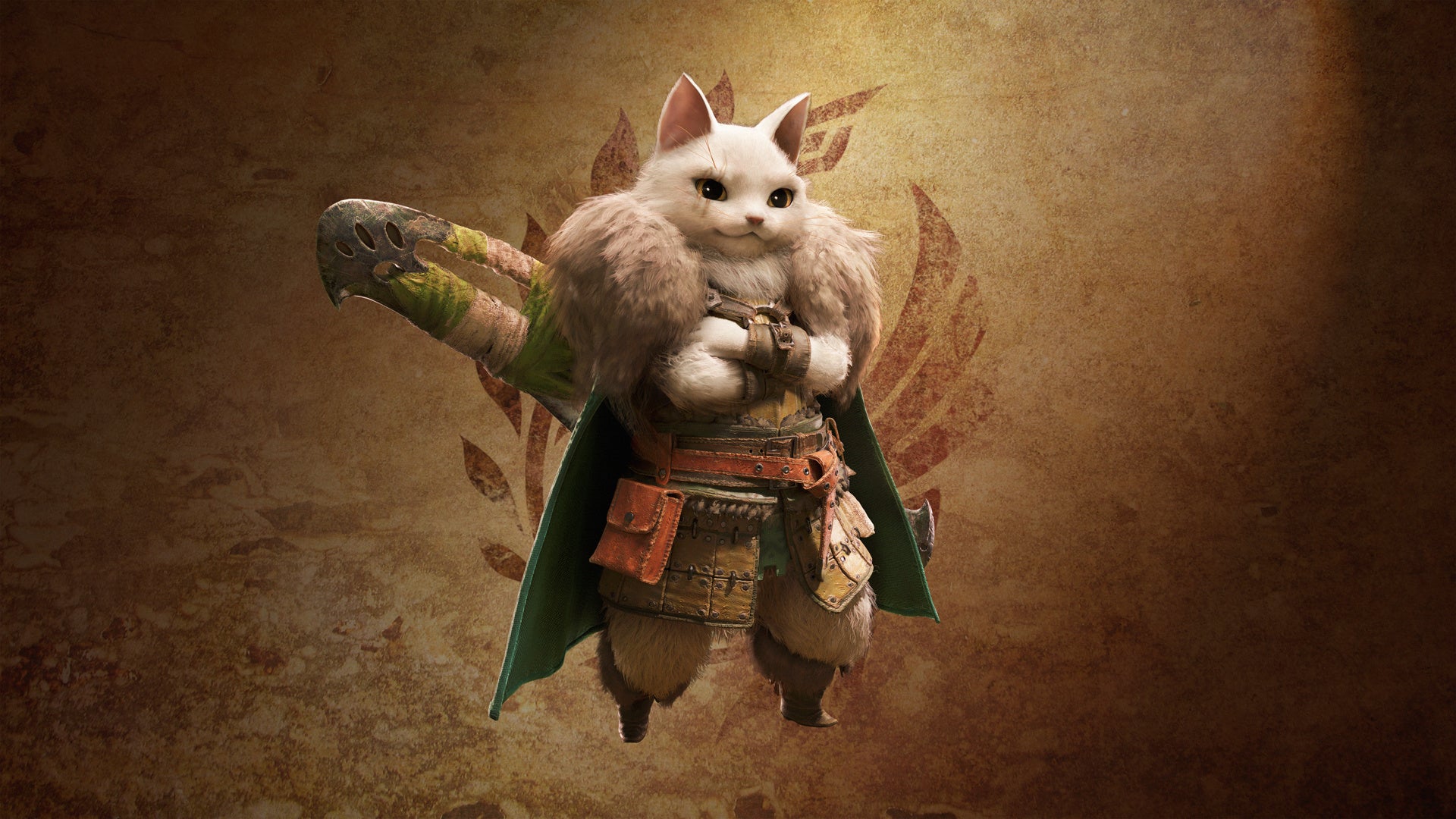 オリヴィアをサポートするオトモアイルー。長毛種のエリートオトモ。