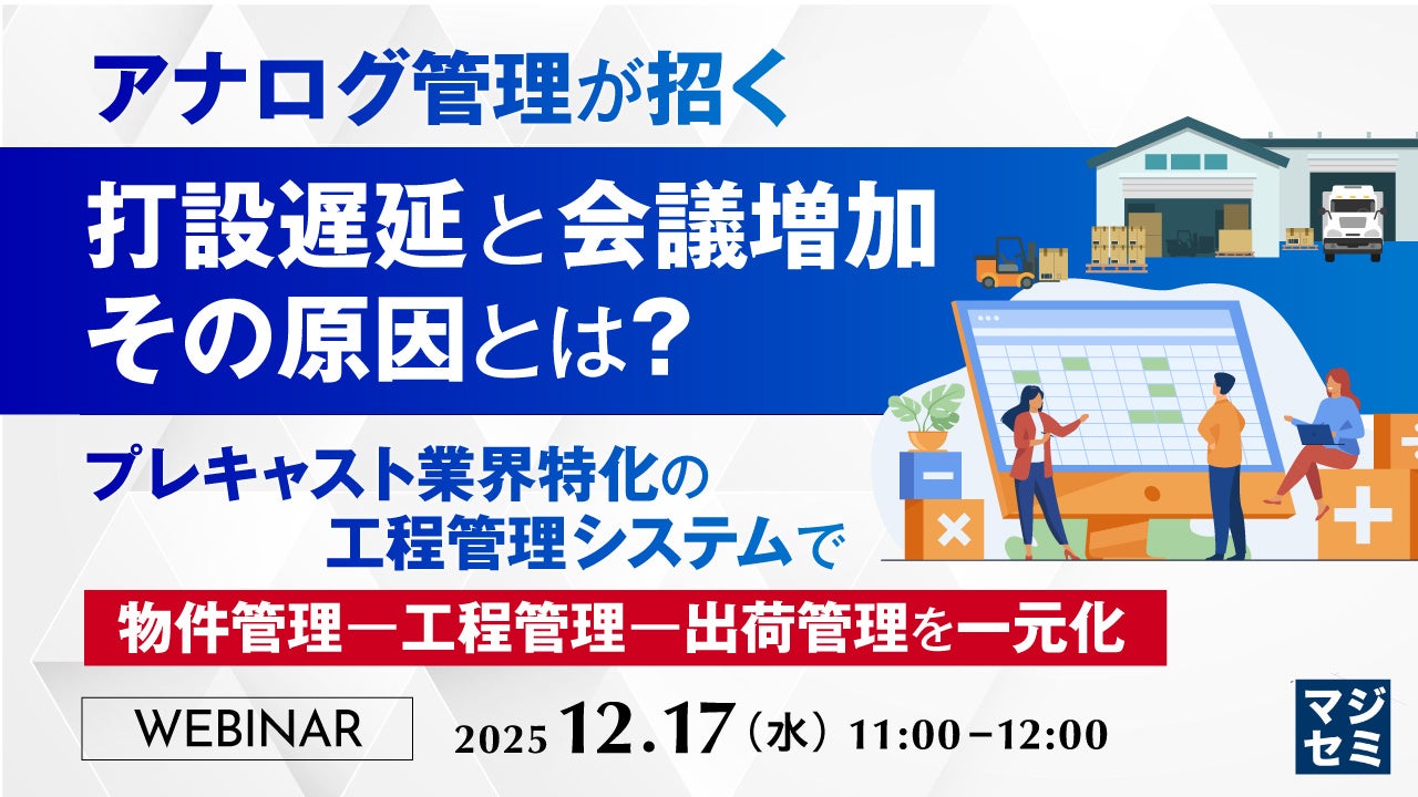 マジセミ株式会社は「アナログ管理が招く打設遅延と会議増加、その原因とは?」というテーマのウェビナーを開催します。