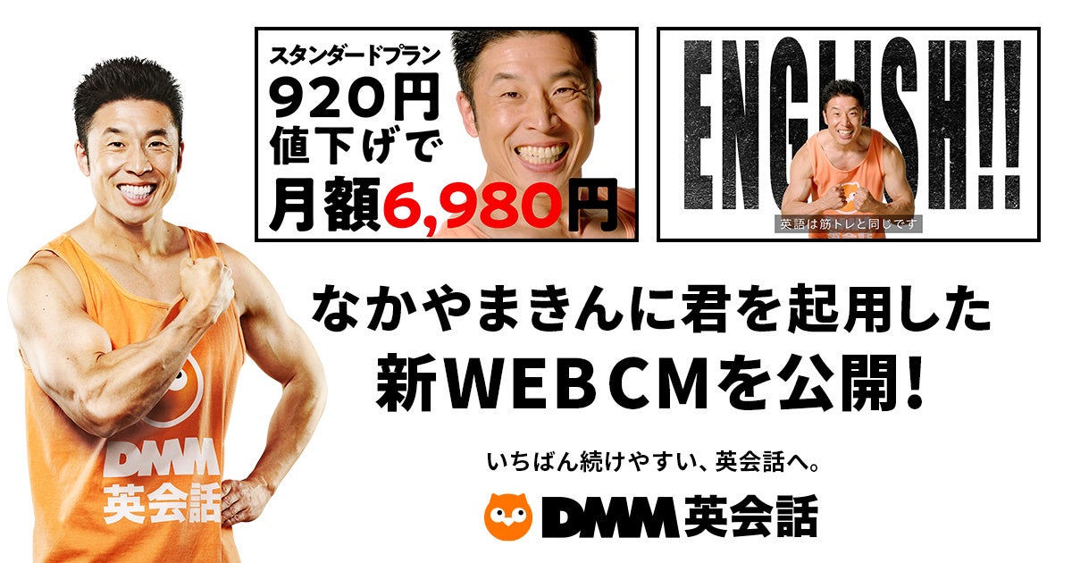 DMM英会話が、新WEB CMを4月24日(水)より公開!なかやまきんに君が「続けることの大切さ」を発信