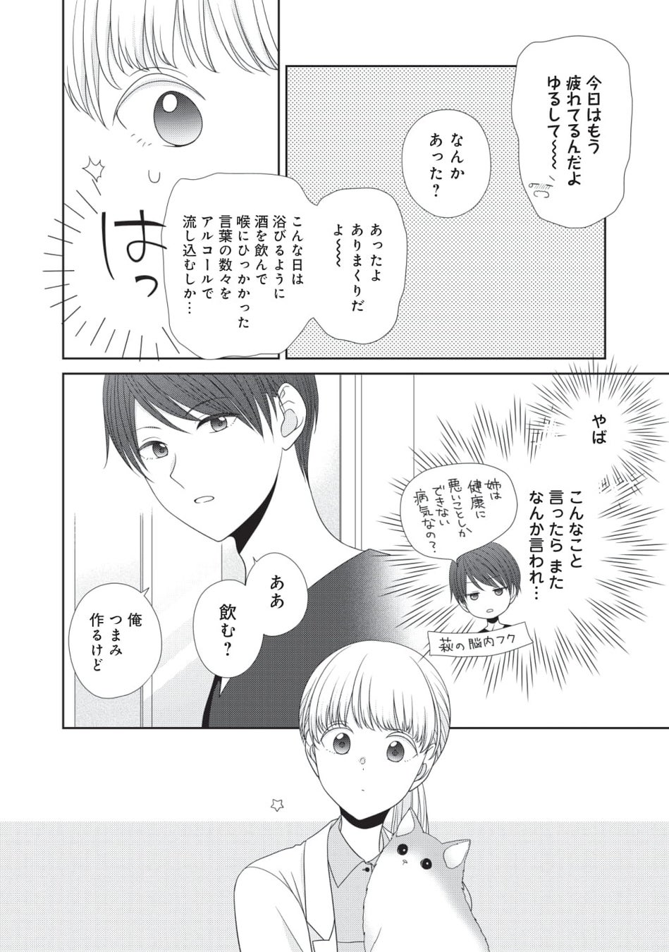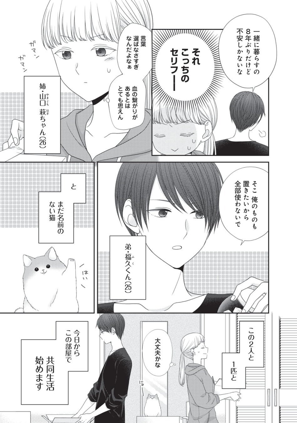 萩(ハギ)と福久(フク)は8年ぶりに一緒に暮らすことになった正反対の性格の姉弟。それぞれそれなりの生き辛さを抱えながら、それなりに暮らしてきた2人。 時々、なんでもっと楽に生きられないんだろうと悶々する気持ちを、酒を飲んでおいしいものを作って食べて、同居人に愚痴って…。 特に何も解決はしないけど、明日も暮らしていきましょう。