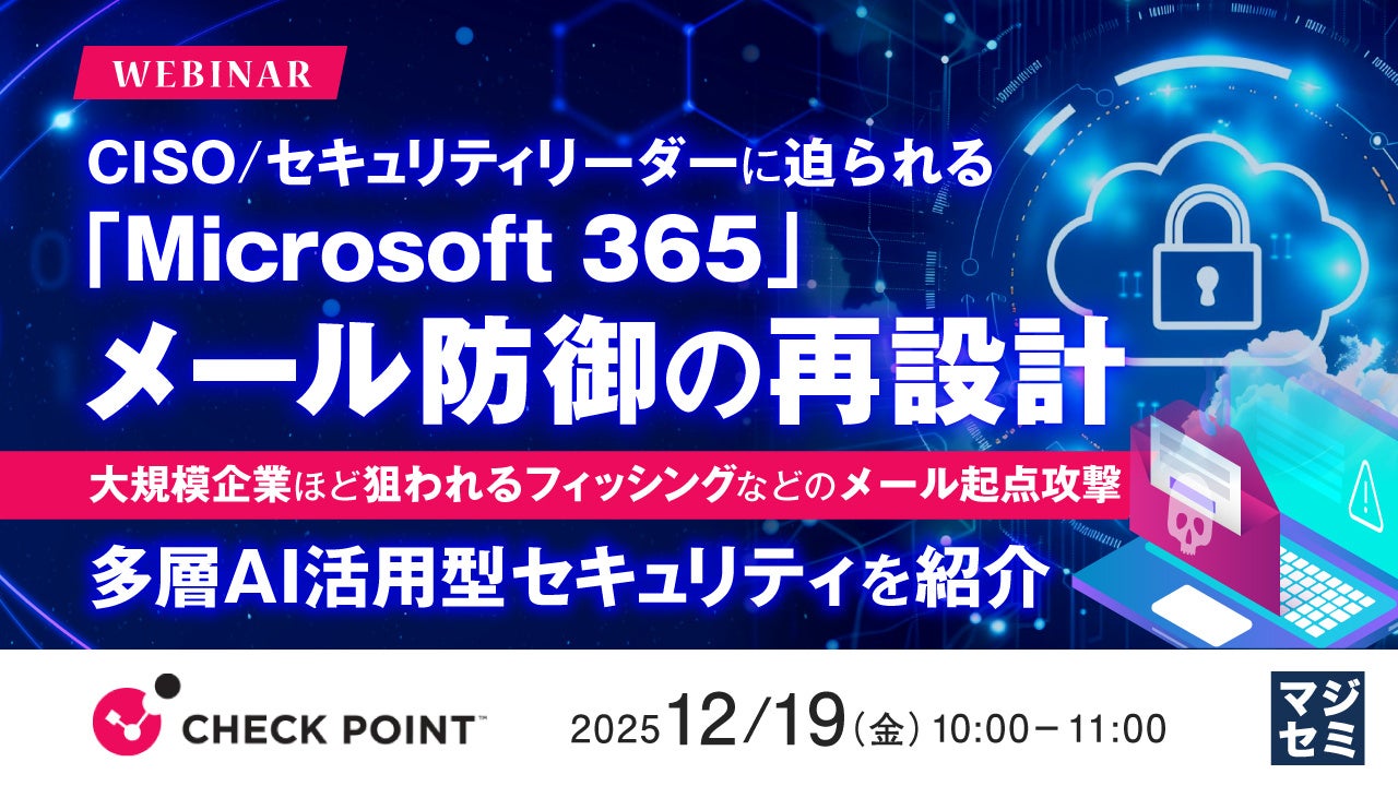 マジセミ株式会社は「CISO/セキュリティリーダーに迫られる「Microsoft 365」メール防御の再設計」というテーマのウェビナーを開催します。