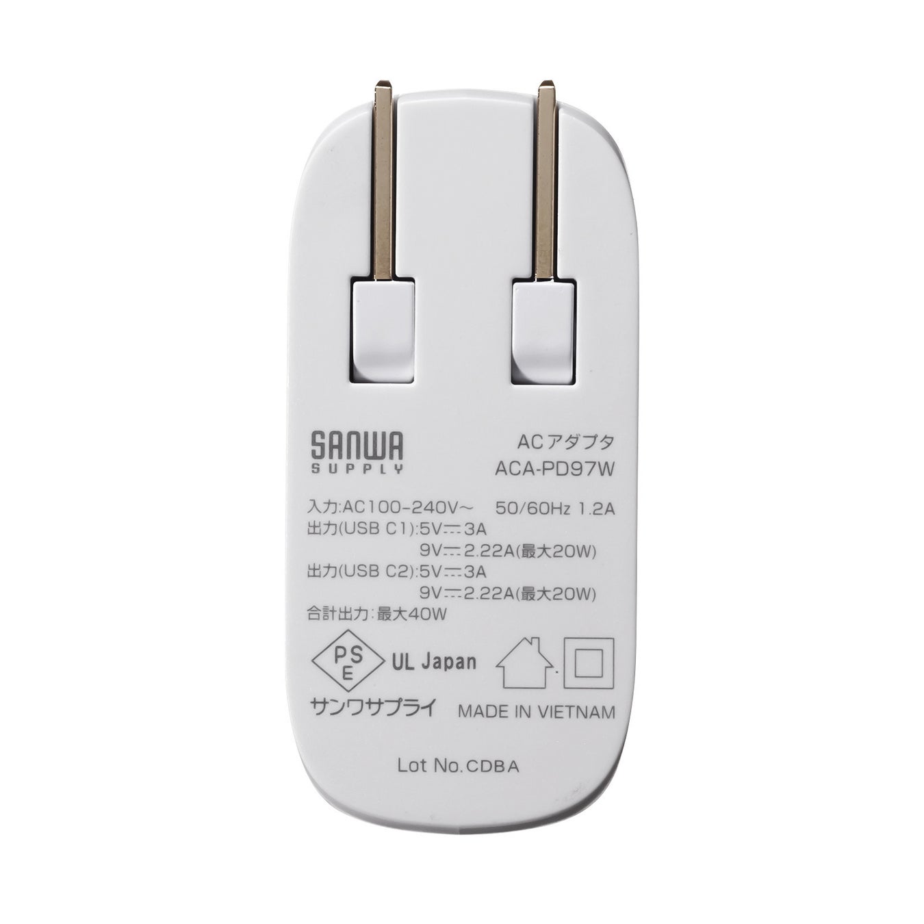 品名:USB PD対応AC充電器(PD20W×2ポート)