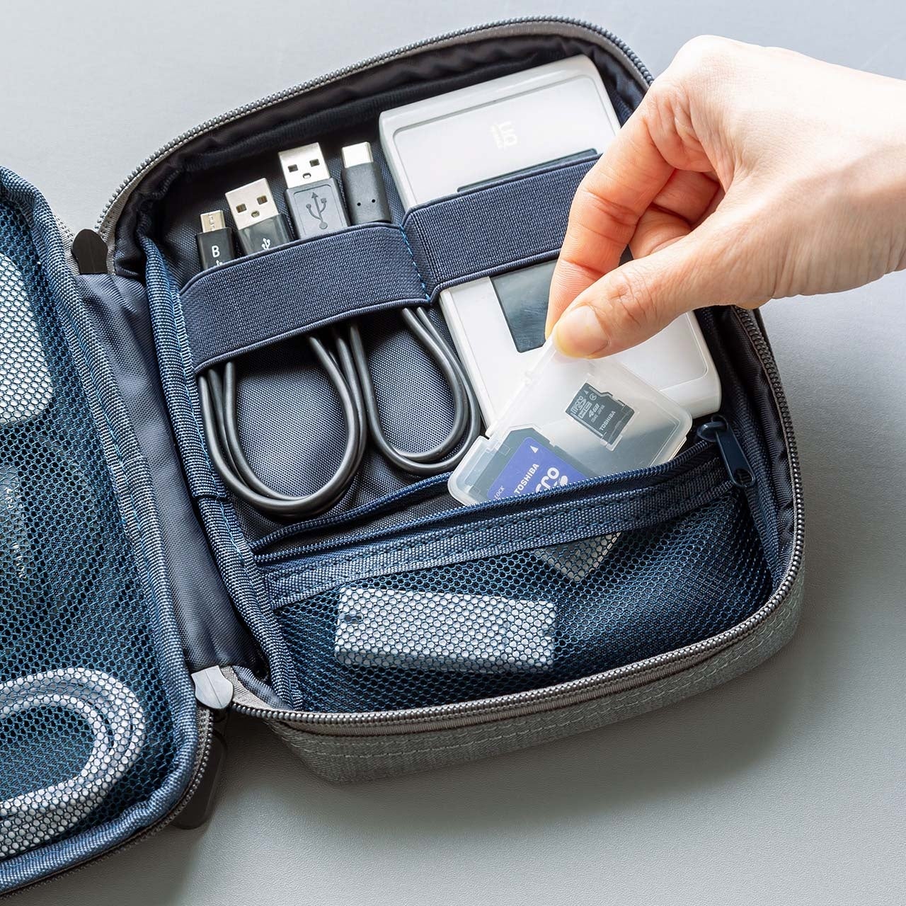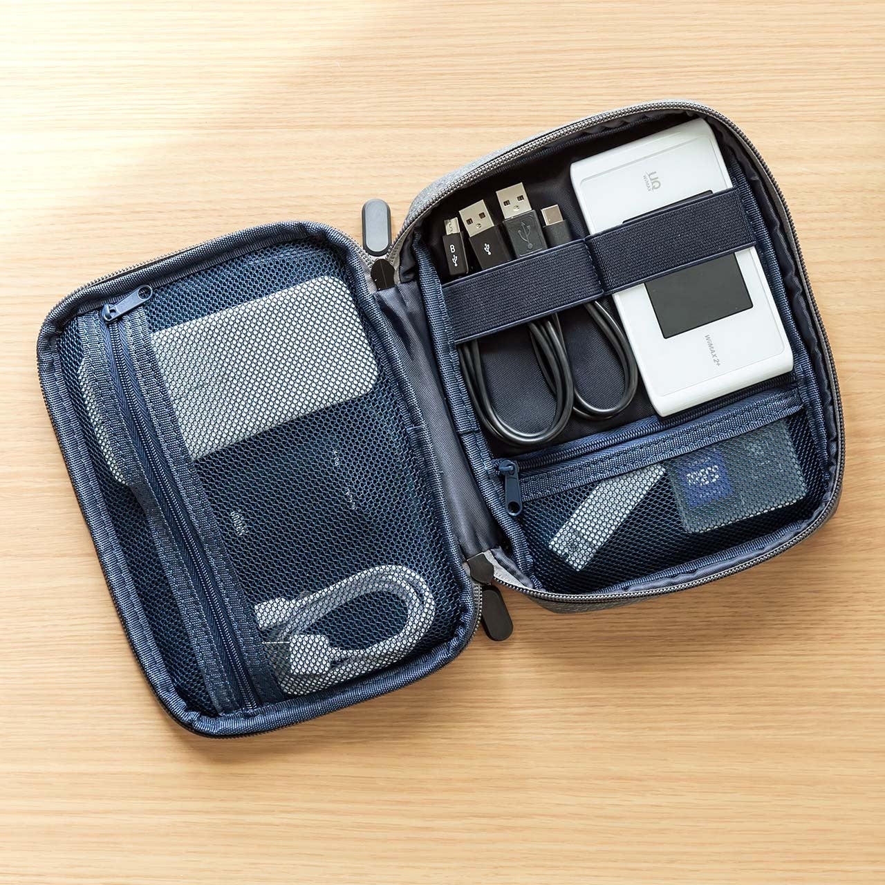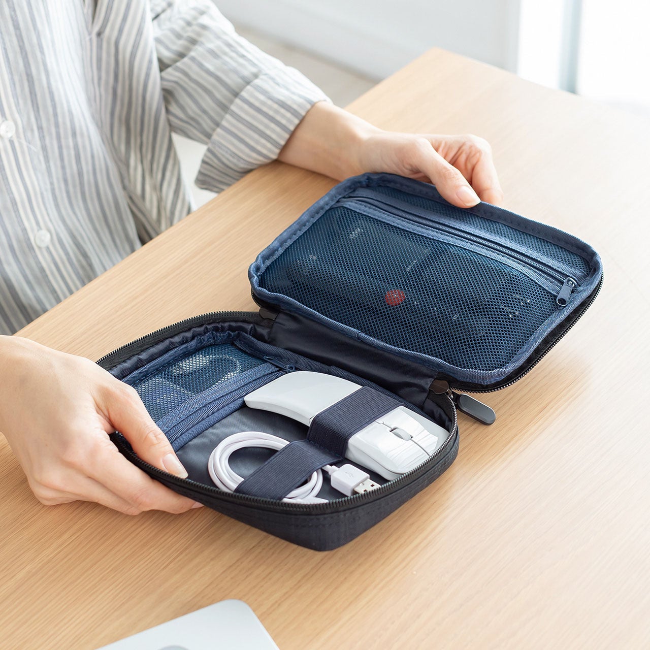 薄型マウスやバッテリーなども収納できます。