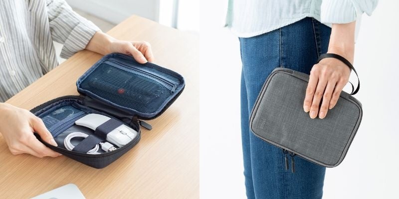 ゴムベルトでしっかり固定でき、メッシュポケットで収納物がわかりやすいガジェットポーチをブラックとグレーの2色展開で1月24日に発売