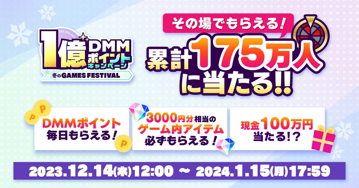 総額1億DMMポイントプレゼント!『冬のDMM GAMES FESTIVAL』開催 毎日50,000人以上がポイントゲットのチャンス!人気タイトルで使える10%OFFクーポンも配布