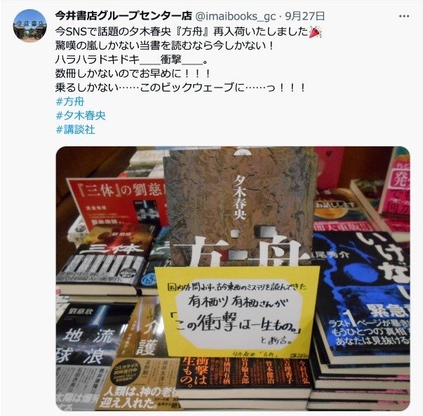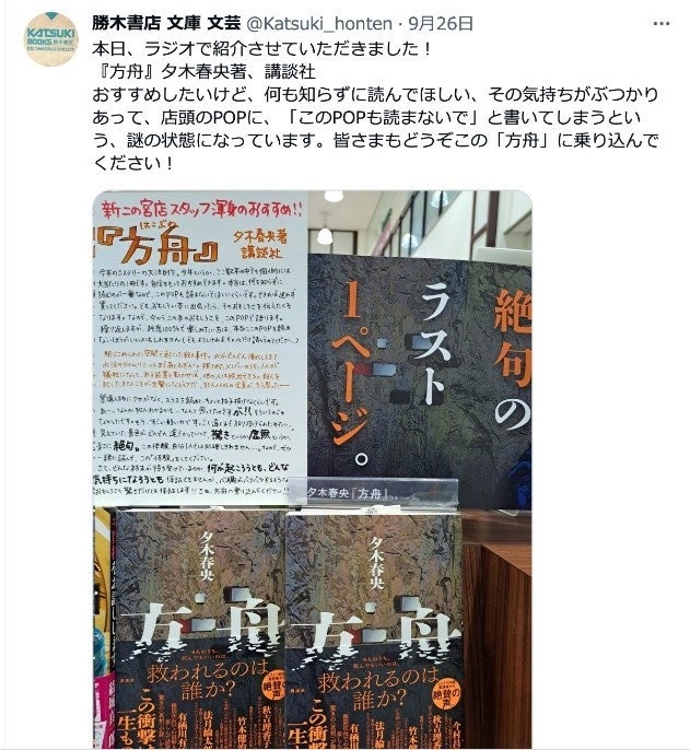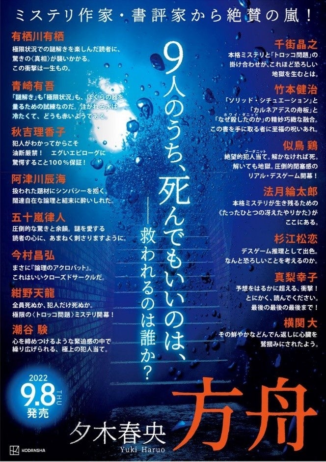 有栖川有栖氏はじめ、ミステリ作家・書評家から絶賛の嵐!まさか!の思いがけないラストにSNSで話題沸騰中のミステリー『方舟』が発売後即重版決定!