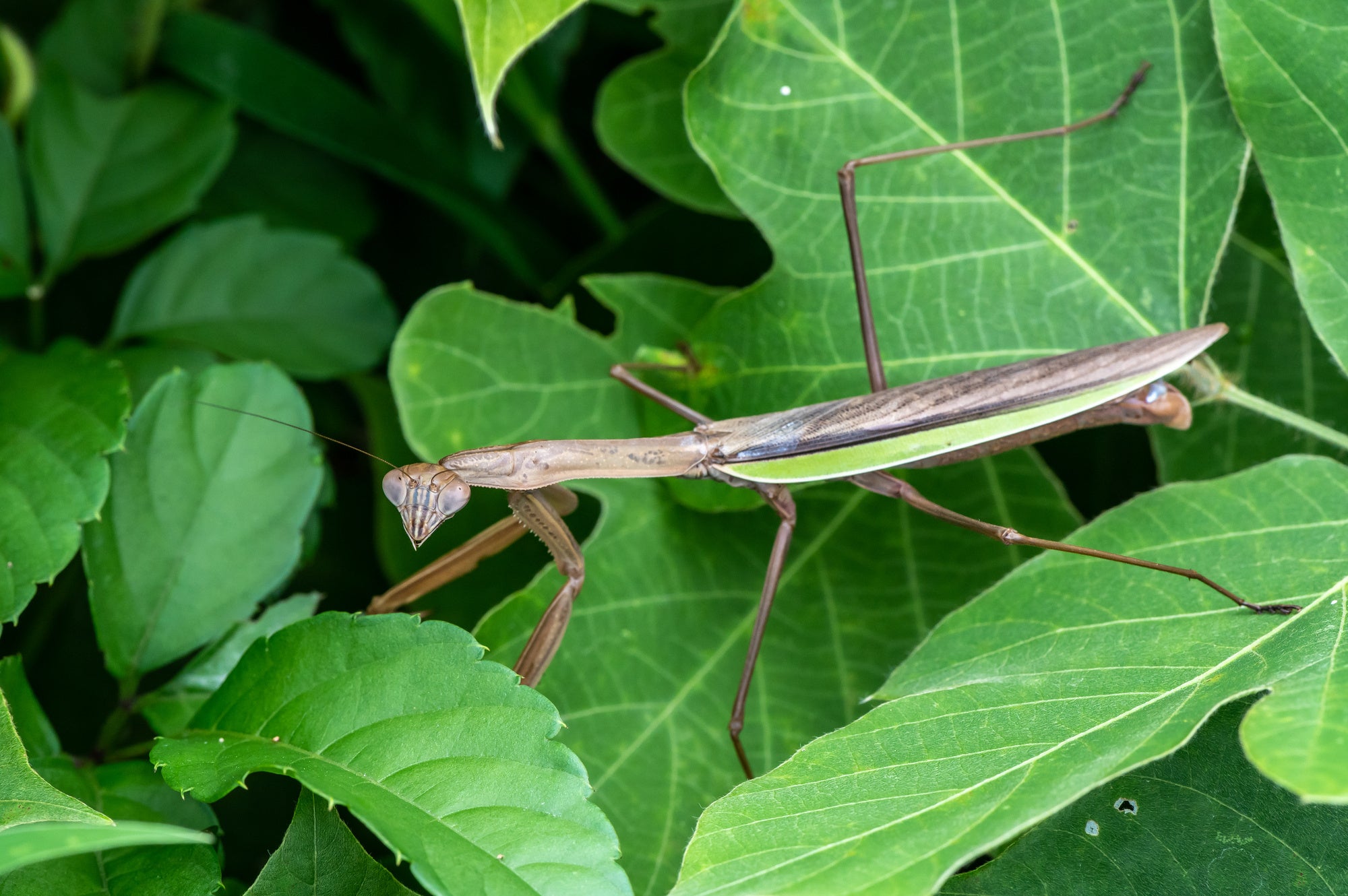 第3位は「ハラビロカマキリ」で、第2位に続けてカマキリのなかまがランクイン!ハラビロカマキリはオオカマキリと比べて小型で、その名のとおり腹部の幅が広いのが特徴です。