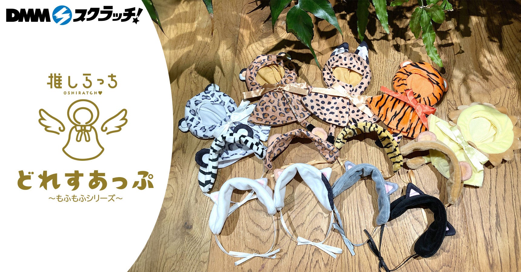 合同会社DMM.com(本社:東京都港区、会長 兼 CEO亀山敬司、https://dmm-corp.com/ 以下DMM )は、ハズレなしのオンラインくじサービス「DMMスクラッチ」にて、2024年5月24日(金)より「推しらっち×どれすあっぷ スクラッチ」を販売いたします。本くじでは、DMMスクラッチから新しい推し活アイテムシリーズ『推しらっち』の第二弾として、DMMスクラッチオリジナルデザインで、ぬいぐるみに着装可能なネコ科の動物モチーフの【ポンチョ】と【ヘッドドレス】が登場いたします。