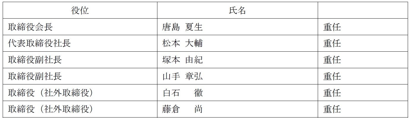 当社は、5月12日開催の取締役会において、来る6月23日開催予定の第30期定時株主総会に付議される予定の取締役人事および定時株主総会終了後開催予定の取締役会に付議される予定の新経営体制について、下記のとおり内定いたしましたのでお知らせいたします。