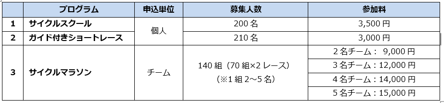 ・ライドイベントは、順位やタイムを競うレースではなく、ファンライドのイベントです。