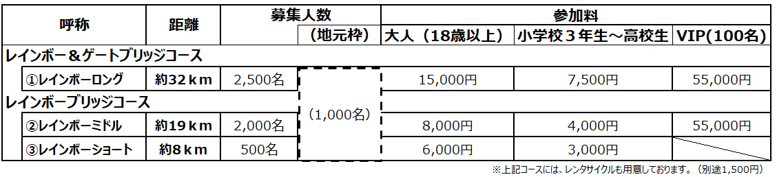 ・参加可能な自転車は、多段ギア付きもしくは電動アシスト付きです(タンデム車両も可)。