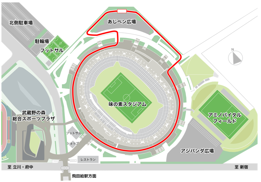 味の素スタジアム 構内外周路特設周回コース(スタート/ゴール:あじペン広場)