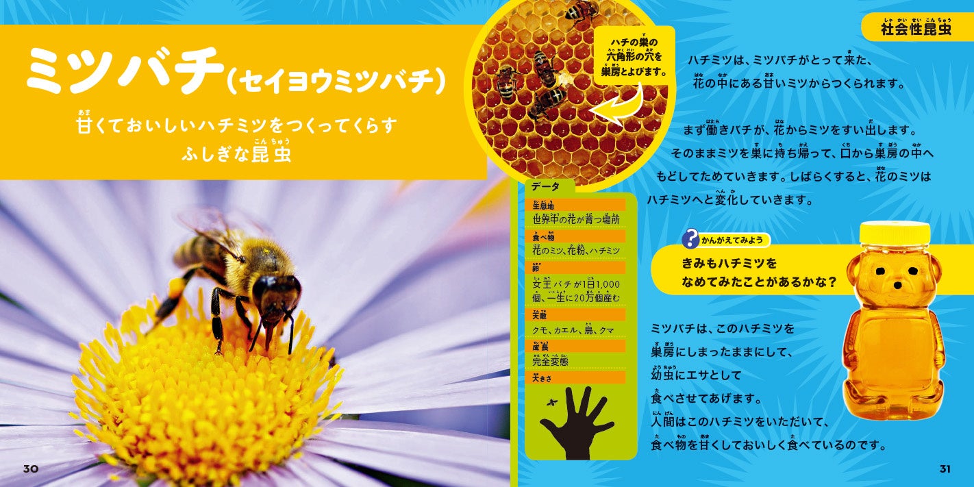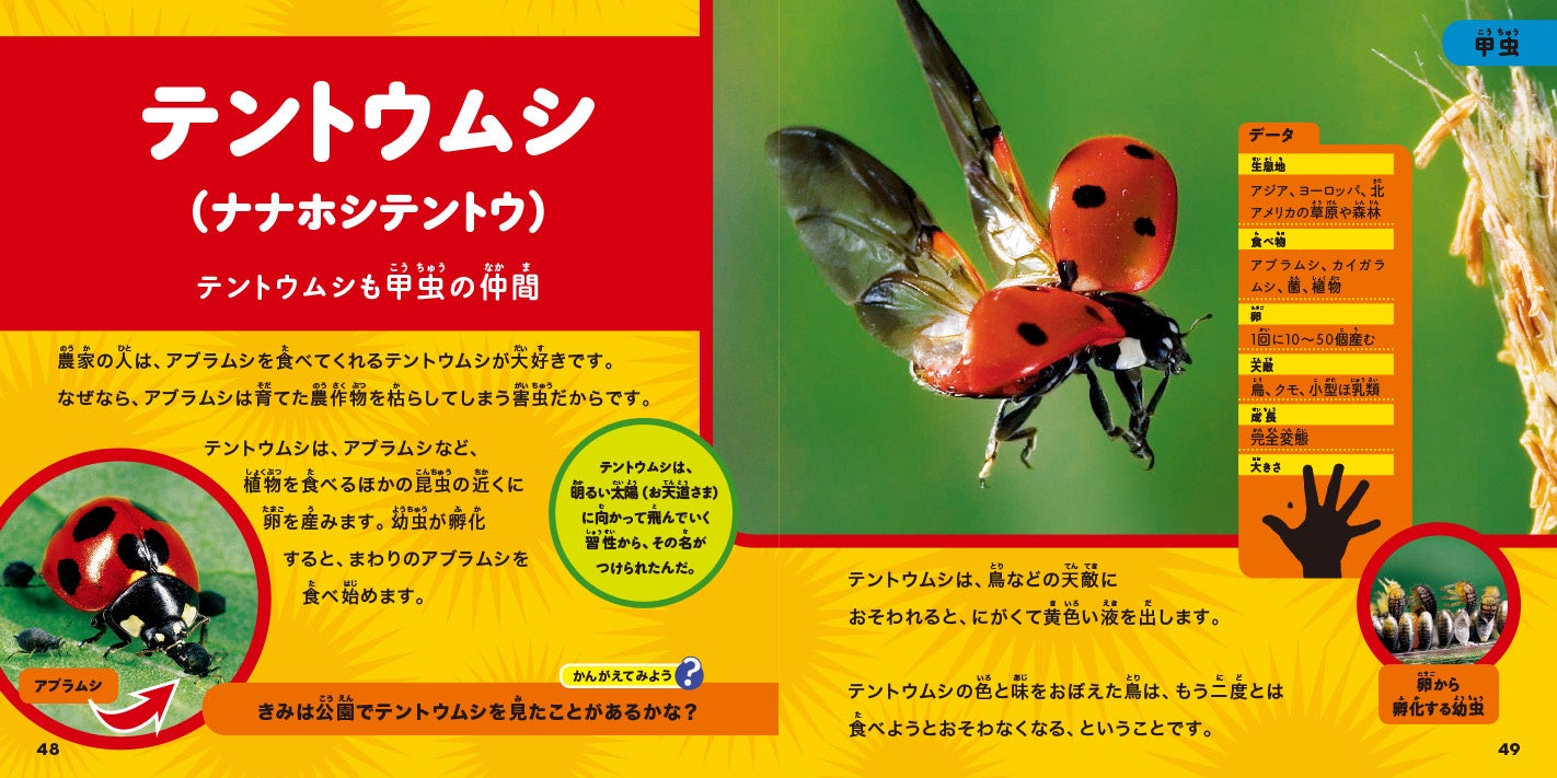 色鮮やかな写真と興味をそそる解説つきで、世界中のさまざまな虫の知られざる特徴や生態を紹介しています。