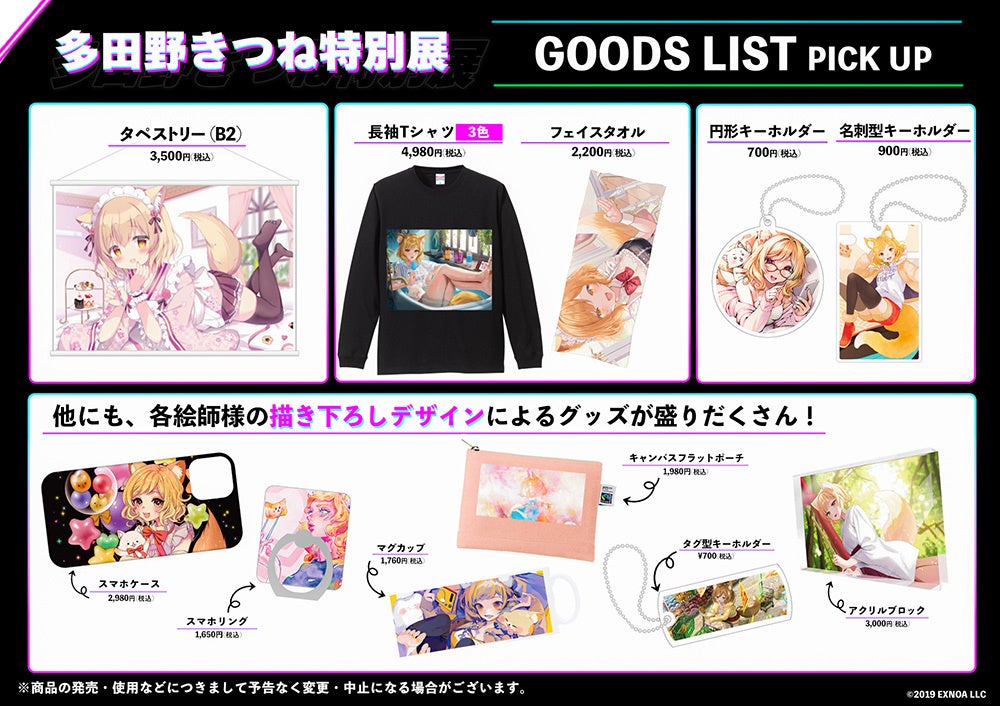 各商品の詳細情報は『多田野きつね特別展』特設サイトおよび公式X(旧Twitter)にてご確認ください!