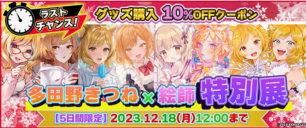 『多田野きつね特別展』の開催を記念して、DMM GAMESショップで使える5日間限定の10%OFFクーポンを配布中です。この機会にぜひ『多田野きつね特別展』オリジナルグッズをお得に手に入れてください!