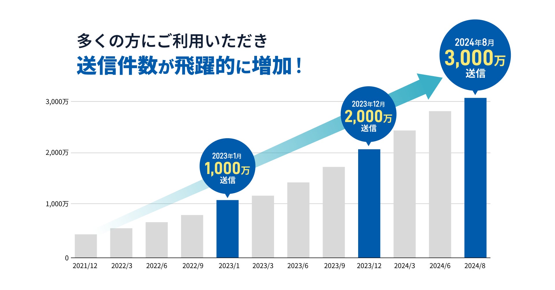(※4)1契約書あたりの平均的な紙の枚数6枚(2024年7月、自社調べ)から、送信件数3,000万件の達成により削減された紙の量を「1億8,000万枚」として換算しています。
