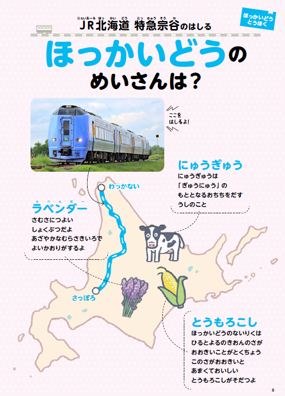 電車で楽しく学ぶことができる「でんしゃでまなぶ」シリーズ、第5弾は電車で楽しく日本の名産を覚えることができる一冊です。47都道府県それぞれを走る鉄道の路線と、電車が走る県の名産を紹介。写真とイラストは全ページカラーで掲載。文章は分かりやすくすべて読み仮名がふってあるため、子どもがひとりで読みひらがなを覚えることもできます。電車が大好きなお子さんへの贈り物にいかがでしょうか。