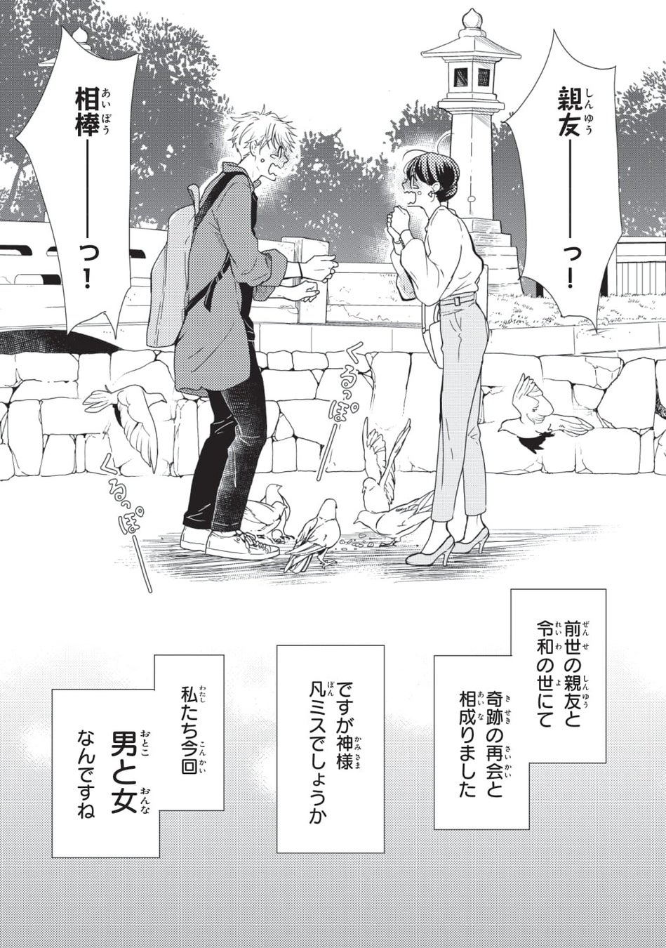 「生まれ変わったら、お前とずっと一緒にいたいーー。」 時は戦国。親友だった二人の雑兵(男同士)は、戦乱の世で命を落としてしまう。二人はそれから幾星霜を経て生まれ変わり、ついに再会…! ただし、男女の姿でーー。 前世では出来なかったあれこれを令和の世でリベンジしまくり! 今世こそ結ばれたい二人の、ハイスピード&ほっこりラブストーリー。