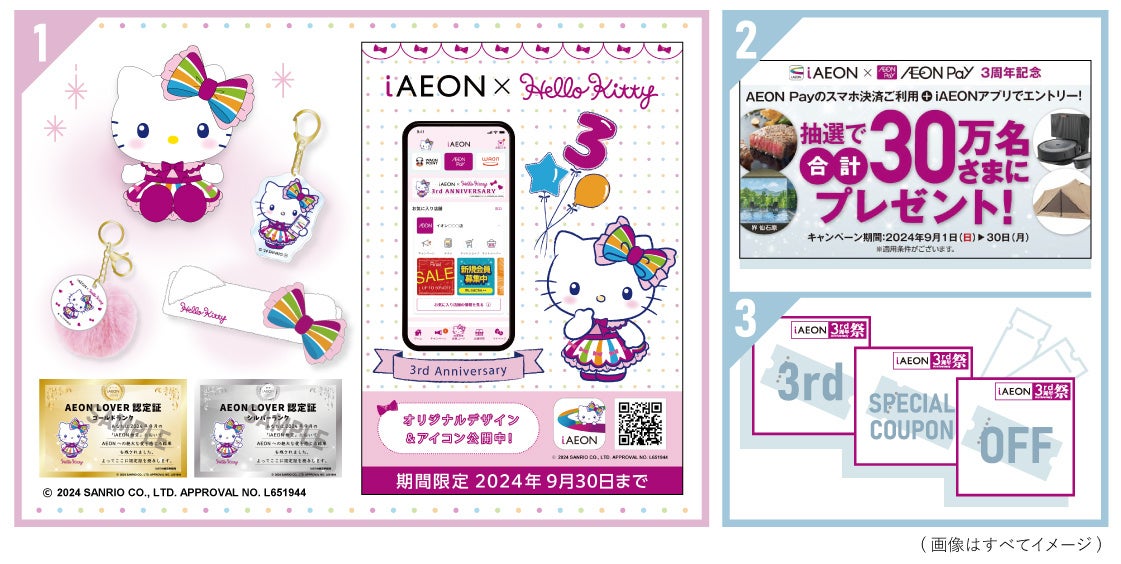 特別コラボレーション”購入金額に応じて厳選アイテムなどが当たる“AEON Pay決済&iAEONエントリーキャンペーン”「3」にちなんだ、おトクなクーポンを受け取ることができる“スペシャルクーポン祭”の3つのキャンペーンを開催します。日頃よりイオングループのお店を利用されているお客さまはもちろん、サンリオのキャラクターファンの方にもiAEONの魅力を感じていただける1カ月です。