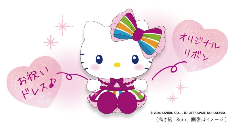 iAEONカラーリングのリボンとドレスをまとったオリジナルのハローキティはiAEON限定のデザインです。