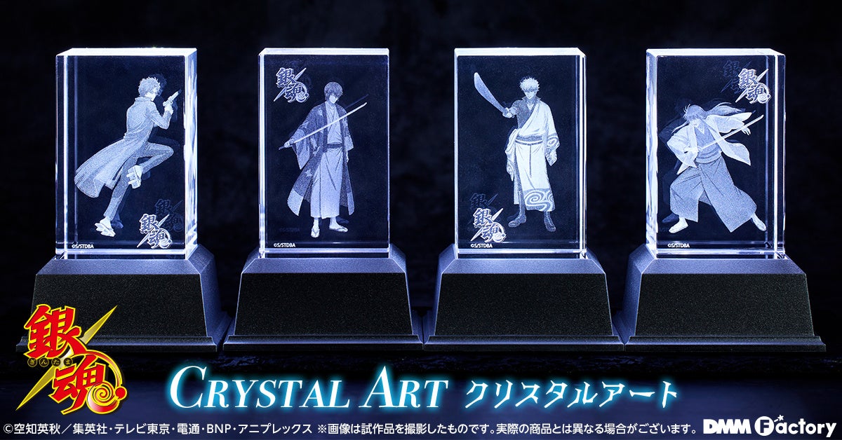 TVアニメ「銀魂」の人気キャラクター 坂田銀時・桂小太郎・高杉晋助・坂本辰馬のクリスタルアートが登場します。