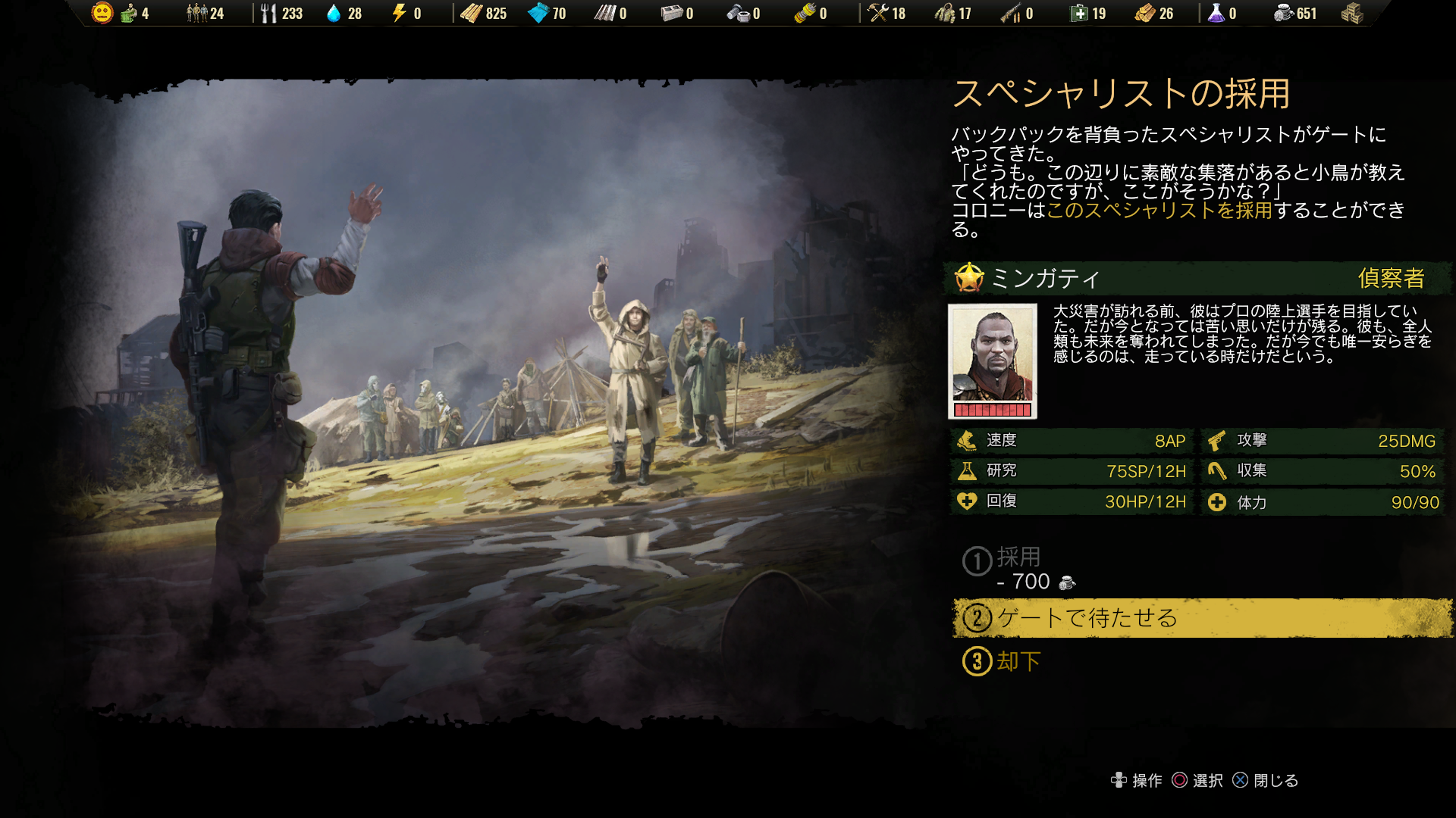 食糧の確保を優先するか、または公民館や学校などを建ててコロニーの社会性を高めるかなど、コロニーの状況に応じた的確な判断が必要です。