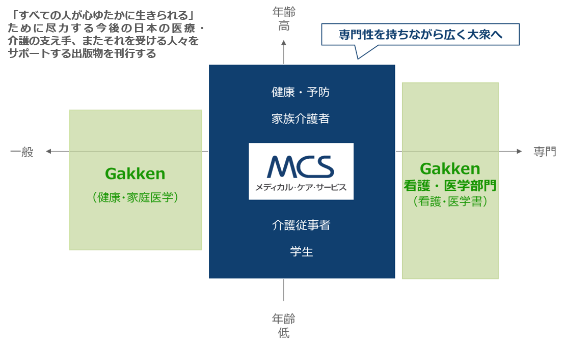 出版事業では、看護・医学書、健康・家庭医学書を発行・発売してきた学研グループのなかで、当社はこれまで培ってきた認知症ケアを中心とした介護事業で培った知見を生かし、家族介護者や介護従事者、学生、また健康づくりや予防に取り組む方々に向けた専門性を持ちながらも広く一般の方々も手に取りやすい出版物を刊行します。