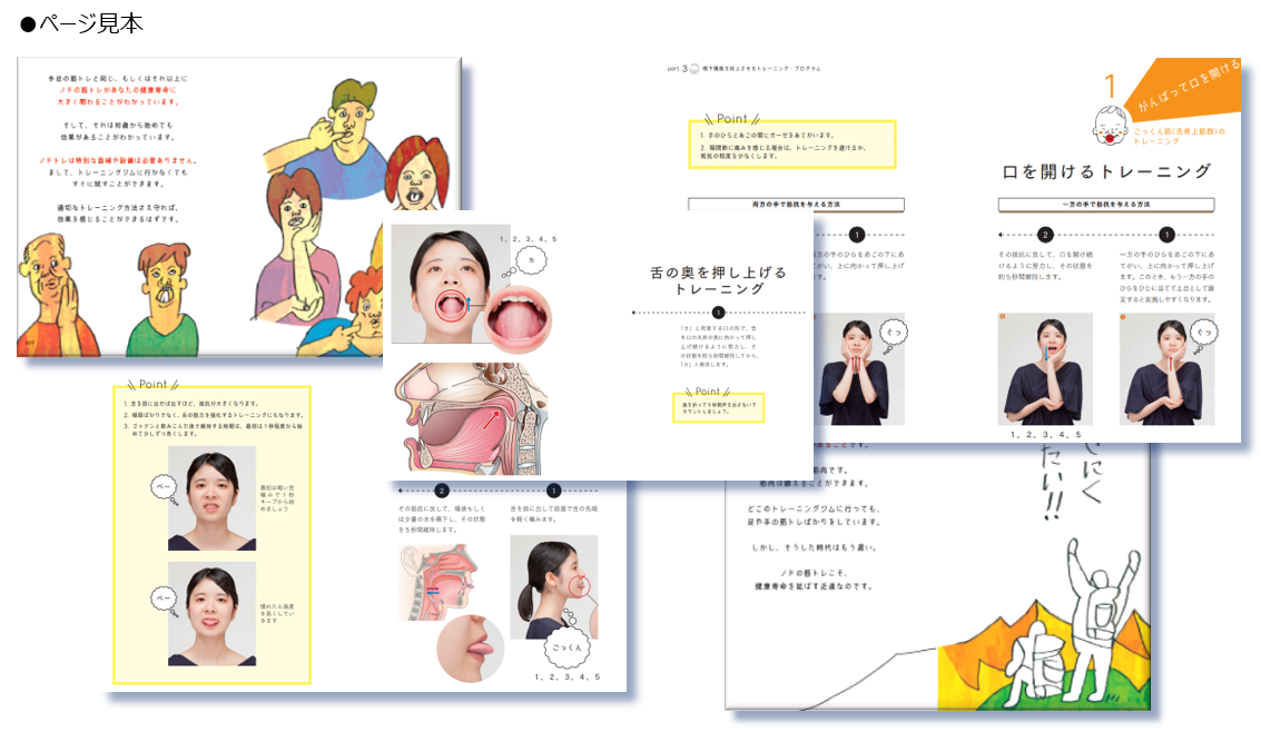 加齢性の嚥下障害は実態がわからないほど多いにもかかわらず、予防の需要性は叫ばれていません。そのため、一般の方によりわかりやすく手に取りやすい装丁、誌面にすることで、自宅で誤嚥性肺炎の予防に役立てられるような一冊にしています。
