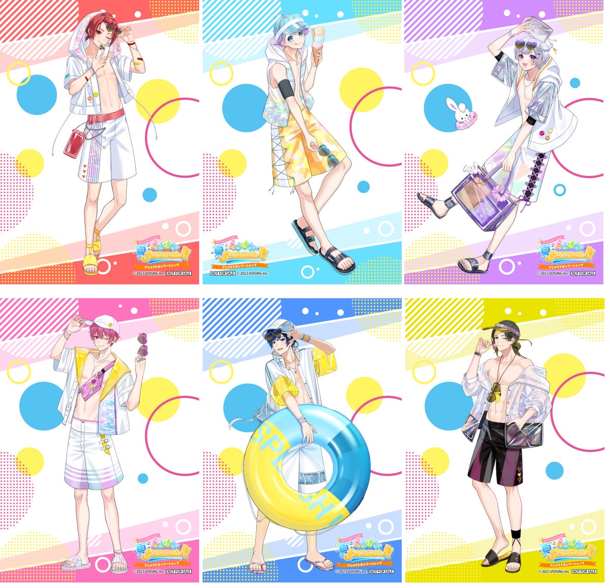 『いれいす Summer Tour 2023 「えびばでぃ - 夏 - Summer !!」アニメイトオンリーショップ』は、8月12日~8月27日までアニメイト池袋本店7F、仙台、福岡パルコ、大阪日本橋2Fにて開催いたします。夏ツアーキービジュアルイラストの等身スタンディなどを展示するほか、オンリーショップ限定商品の販売も行います。