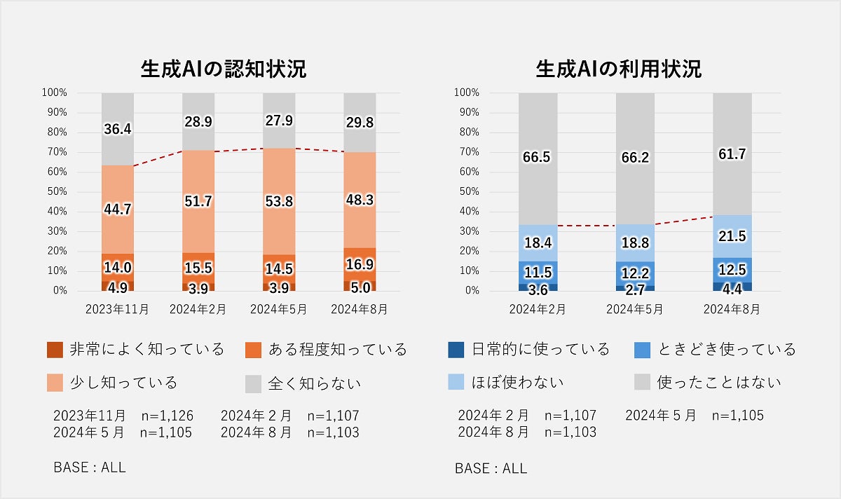■生成AIの認知と利用状況(2023年11月~2024年8月の比較)