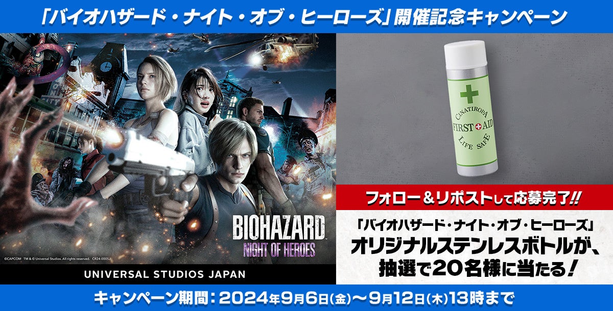 ユニバーサル・スタジオ・ジャパン『バイオハザード™・ナイト・オブ・ヒーローズ』開催を記念して、パークオリジナルグッズ「ステンレスボトル」を抽選で20名様にプレゼント!