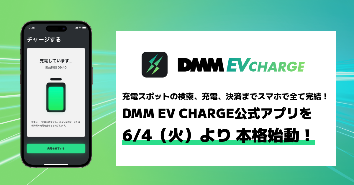充電スポットの検索、充電、決済までスマホで全て完結!公式アプリ「DMM EV CHARGE」を6/4(火)より本格始動