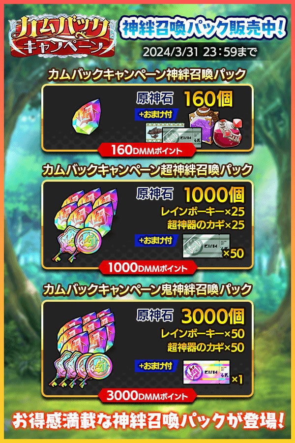 SSR確定ガチャチケット付きの「鬼神絆召喚パック」など、お得な限定パックが登場!