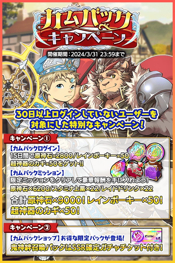 30日以上ログインしていないユーザーを対象とした特別なキャンペーンがスタート!