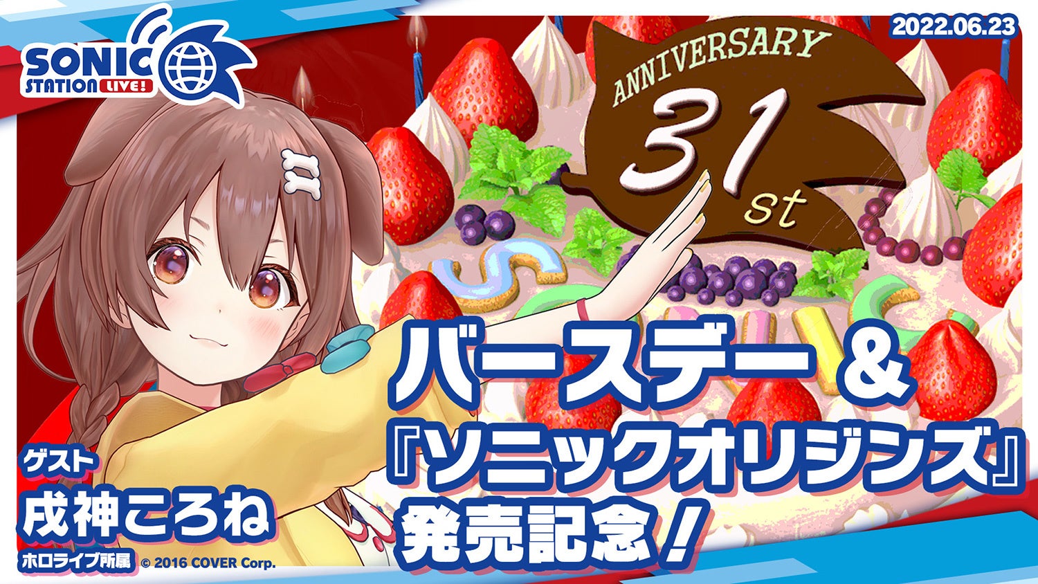 6月23日(木)19時より生放送!ソニックバースデー&『ソニックオリジンズ』発売記念の「ソニックステーションLIVE!」追加ゲストとして戌神ころねさんの出演が決定!