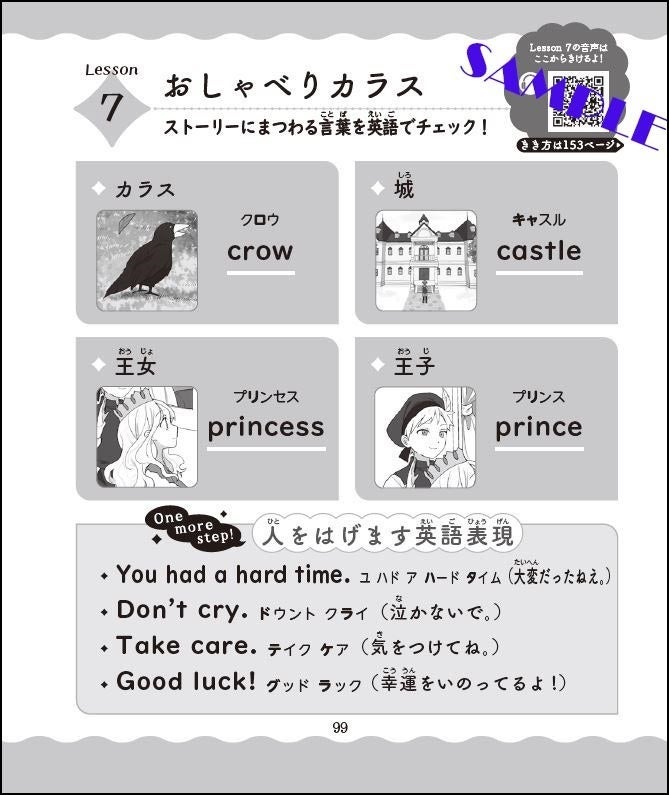 映画のパンフレットのように物語を紹介しつつ、お話にまつわる英単語も掲載しています。