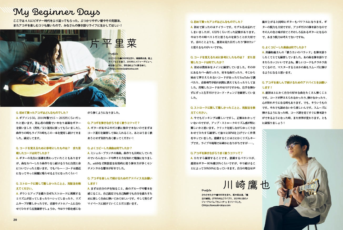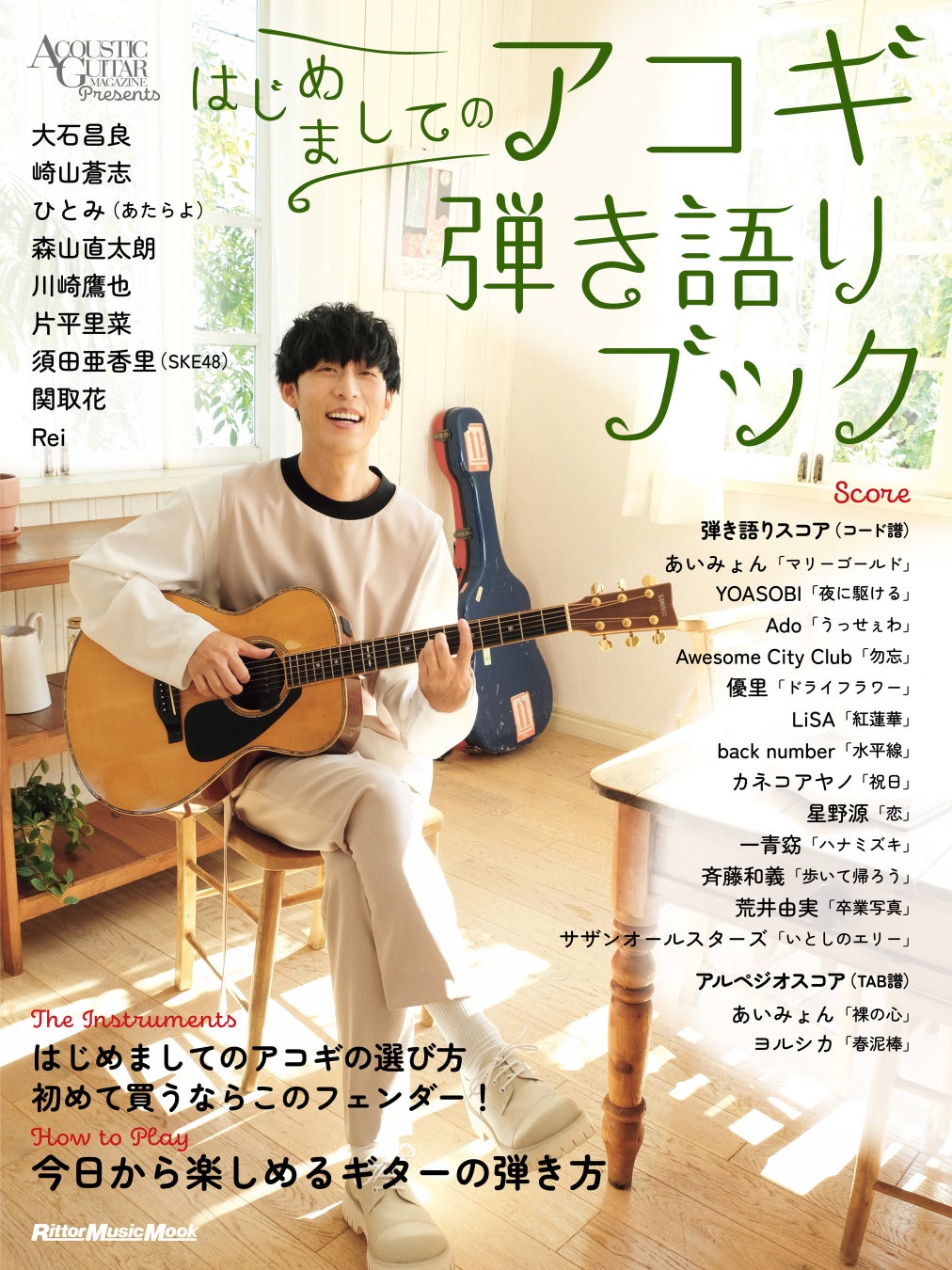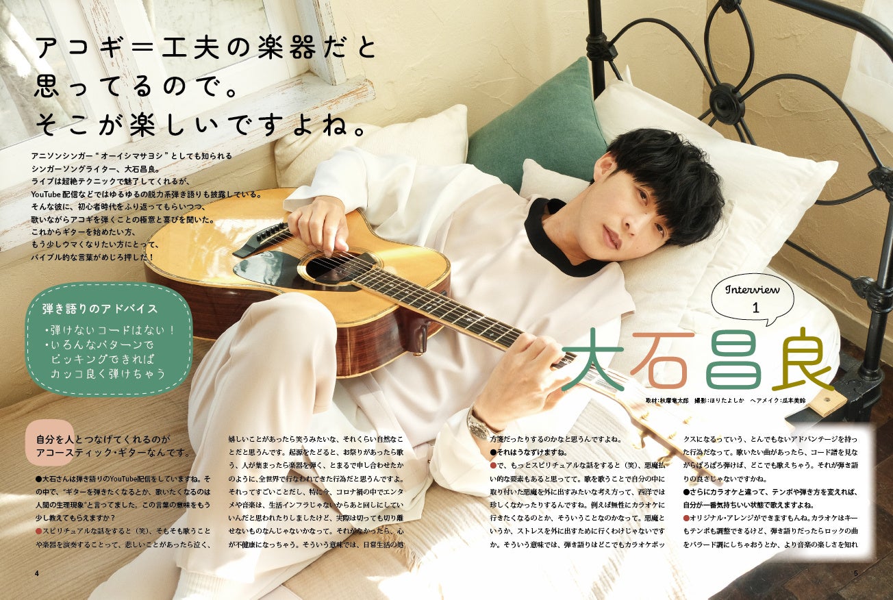 アコギ弾き語り初心者へ向けたムック『はじめましてのアコギ弾き語りブック』が発売中、大石昌良や須田亜香里(SKE48)のインタビュー、15曲のスコア集など掲載!