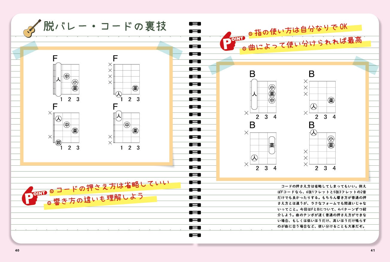 これからアコギを始めたい、弾き語りがウマくなりたい、そんなビギナーのための1冊です。実は、弾き方に正解なんてありません。難関のひとつであるFコードも、ラクな押さえ方から始めてもいいのです。まずはアコースティック・ギターの音に感動し、曲を演奏する喜びを味わってほしい。