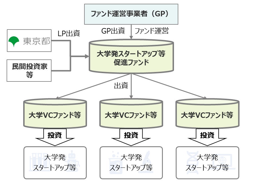 この度、東京都では、知の拠点である大学や研究機関の集積を活かし、大学の優れた研究や研究開発型のディープテック企業の技術を社会に実装するためのファンドを創設します。これにより、スタートアップのさらなる成長や裾野拡大を促進していくことを目指します。