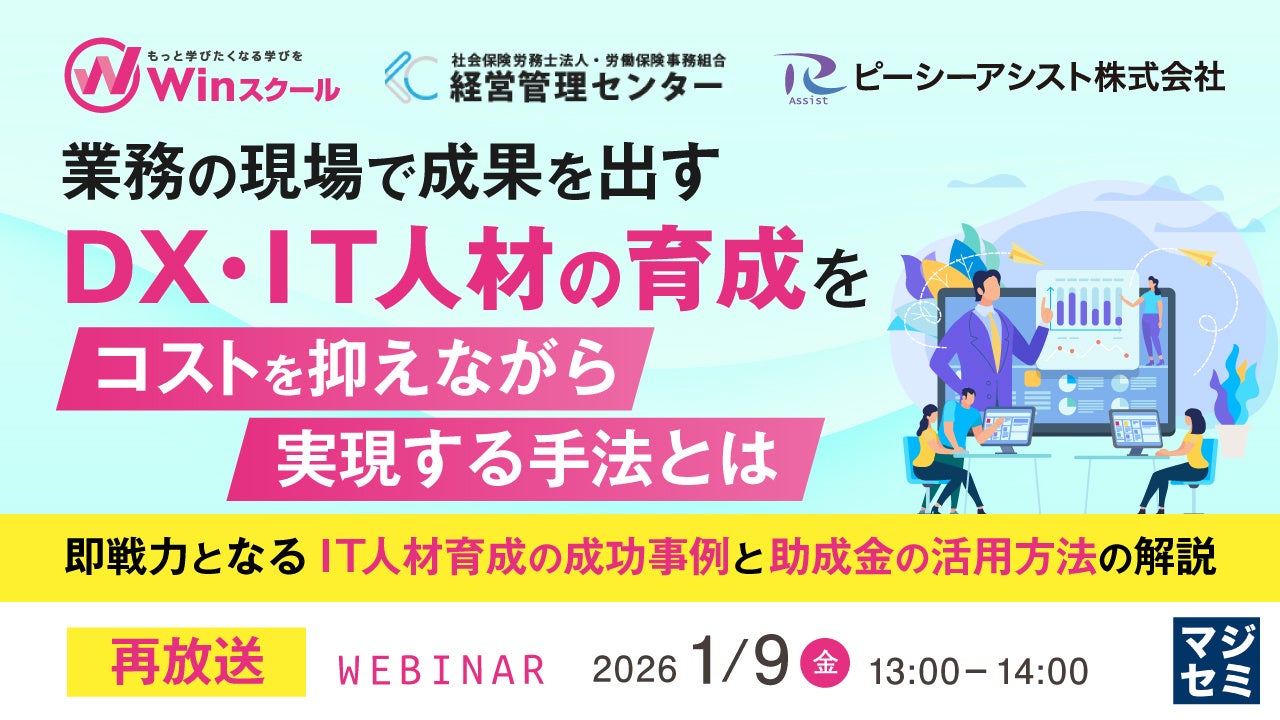 マジセミ株式会社は「【再放送】業務の現場で成果を出すDX・IT人材の育成をコストを抑えながら実現する手法とは」というテーマのウェビナーを開催します。