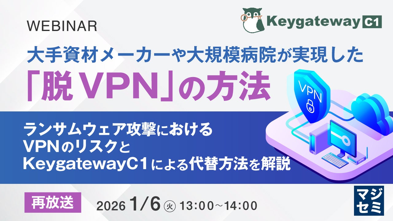 マジセミ株式会社は「【再放送】大手資材メーカーや大規模病院が実現した「脱VPN」の方法」というテーマのウェビナーを開催します。