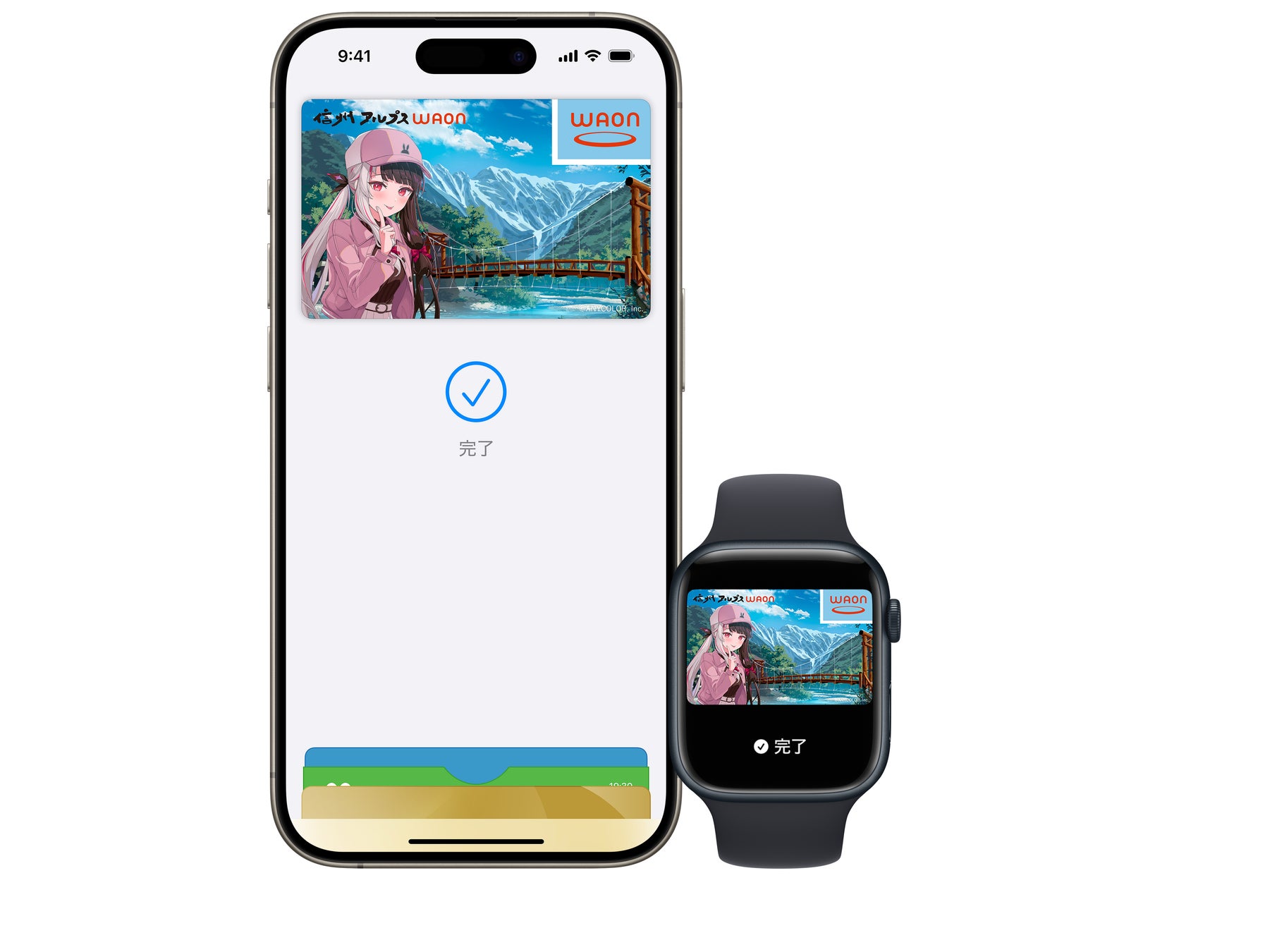 2021年10月21日にサービスを開始した Apple Pay のWAONは、プラスチック型WAONカードと同様に iPhone や Apple Watch でチャージや支払いができ、全国140万カ所以上で、より安全に、よりスピーディに、より便利にご利用いただけます。